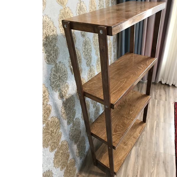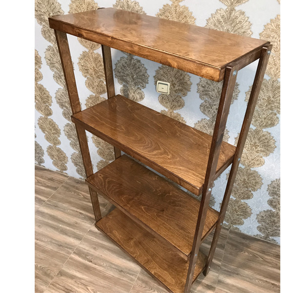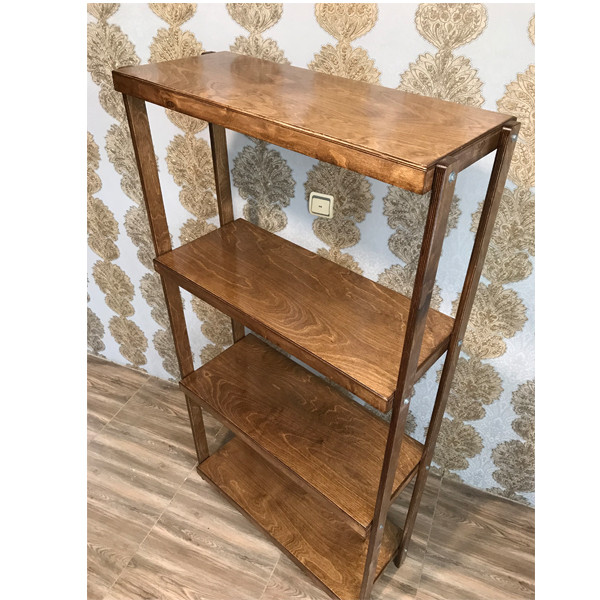 لازم تاکید کنیم که چوب استفاده شده در این قفسه کاملا طبیعی می باشد که با سیلر ، کیلر و پلی استر رنگ شده و تحت هیچ شرایطی mdf یا لترون یا چوب خام نمی باشد از تخته های یک تیکه استفاده شده تا چیدمان راحت تری داشته باشید و همچنین این محصول به راحتی با استفاده از پیچ و مهره باز و بسته می شود و شما میتوانید بدون هیچ مشکلی بارها اقدام به باز و بست استند کنید. این استند چوبی بزرگ تمام چوب میباشد ومقاومت خوبی دارد پایه رگلاژ جهت تراز شدن کار نصب شده است