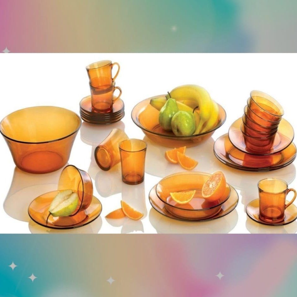 سرویس ۴۴ پارچه عسلی فرانسه مارک دورالکس نو وآکبند ۶ بشقاب پلویی ۶ بشقاب خورشتی ۶ پیش دستی ۶لیوان ۶پیاله ۶فنجان ۶ زیر فنجان ۱ میوه خوری قطر۲۳ ۱ دیس بزرگ۳۶ سانت همگی کاملا آکبند و وکیوم می باشند