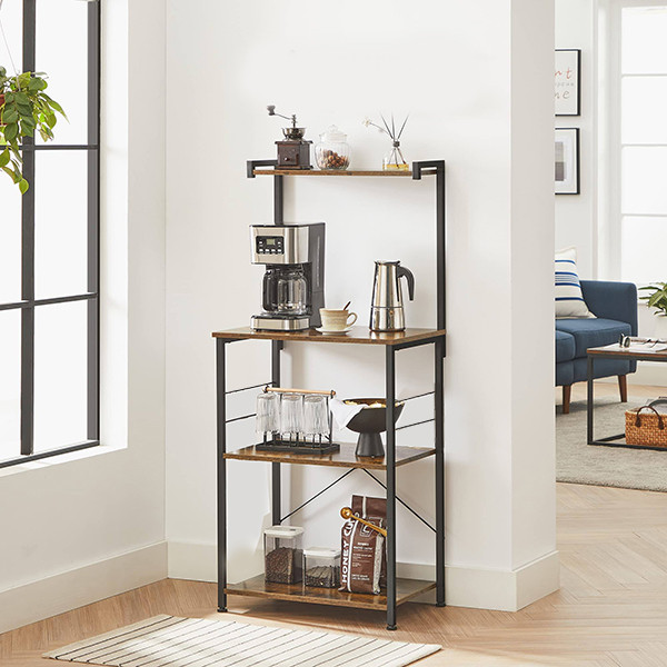 این محصول از تولیدات وینبیکن است که مورد استفاده در آشپزخانه، پذیرایی، اتاق ها جهت نظم دهی و قرار دادن ظروف ،دستگاه قهوه، کتاب و وسایل تزیینی می باشد.جنس این محصول از بدنه آهن با ضخامت 20X20 میلیمتر و رنگ بدنه مشکی براق استاتیک (کوره ای ) و جنس چوب از ملامین درجه 1 برند ممتاز گلستان همراه با بسته بندی مناسب است.