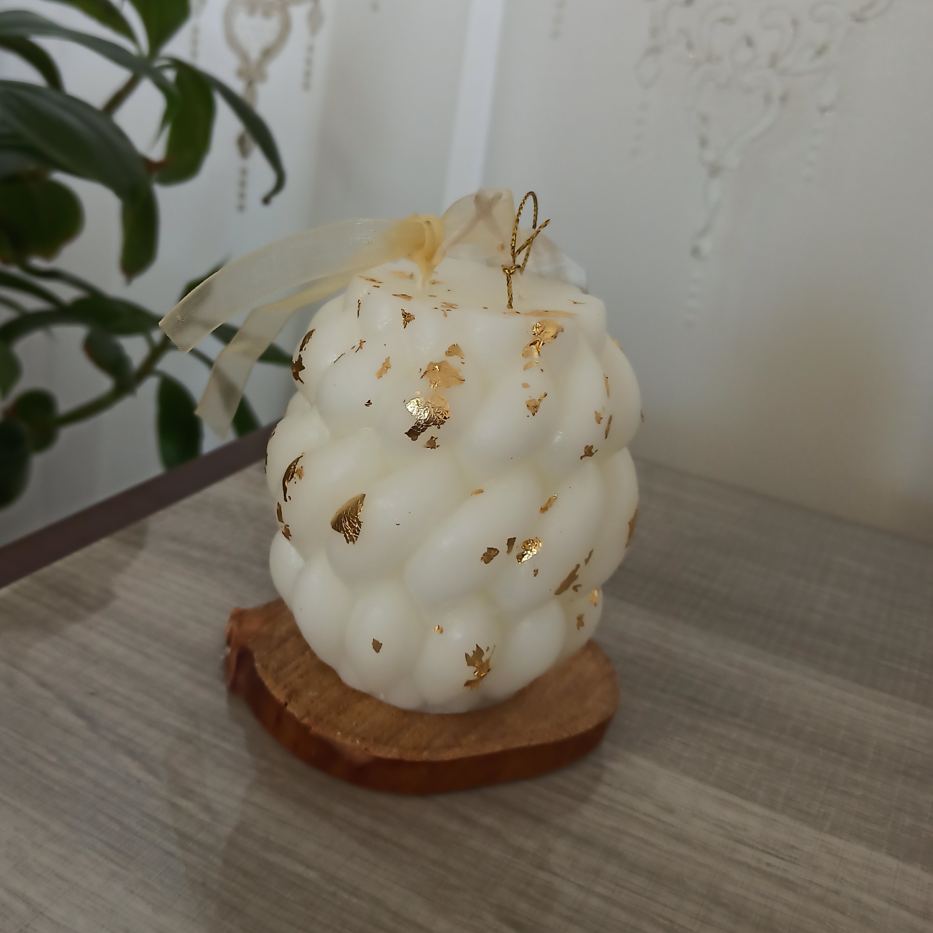 شمع طرح بافت شمعی که حالت دکوری هم داره و خیلی زیباست😍 جزو شمع های خاص بازار هست تزئین به دلخواه شما میتونه با ورق طلا یا ورق نقره باشه از پارافین ۱ درصد خالص و باکیفیت درست شده