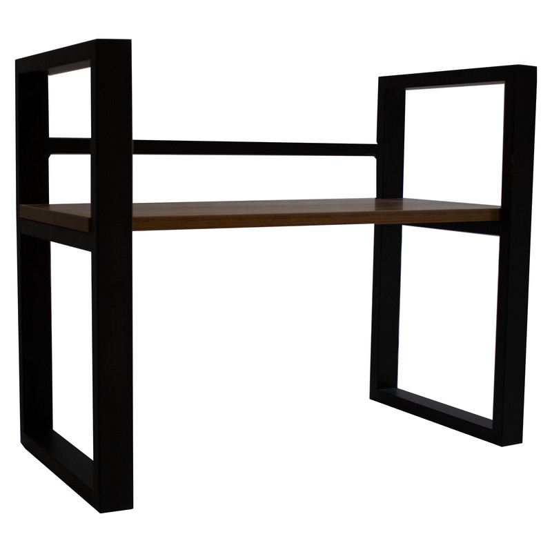 کتابخانه مدل رومیزی کد IKE435 تلفیقی از چوب و فلز جنس روکش از ملامینه ضد خش میباشد و دارای فلز مستحکم رنگ مشکی کوره ای و در رنگ های زیبا و شکیل گردویی و انتیک طلایی و سفید میباشد .