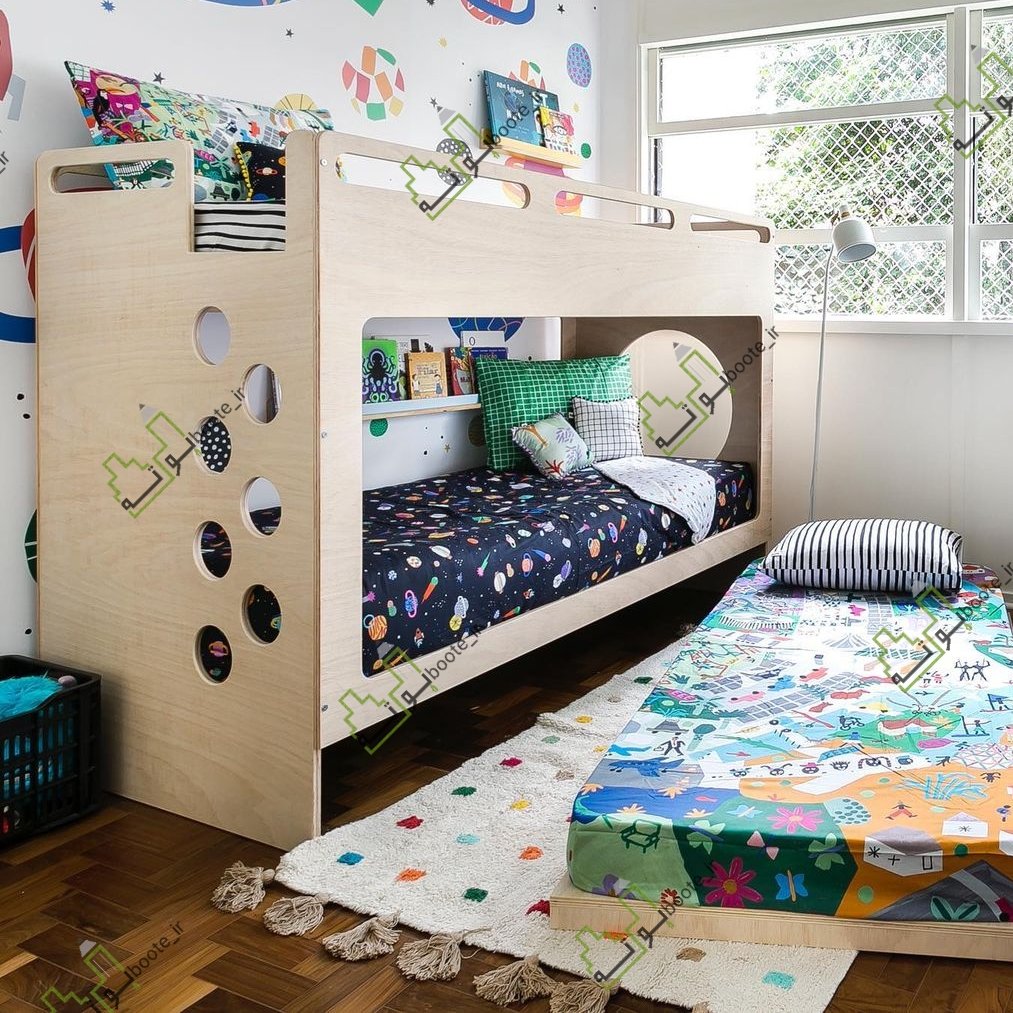 تخت دو طبقه چوبی سایز نوجوان شیک و خاص ارسال رایگان به سراسر ایران مبلمونسرا مدل 225174