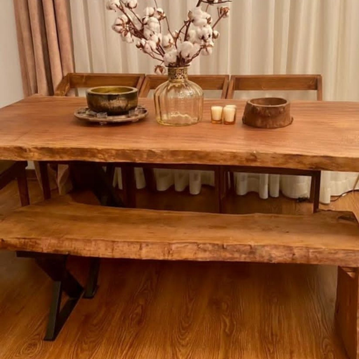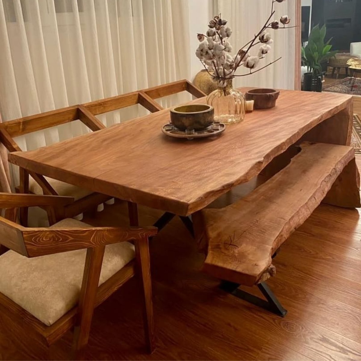 میز نهارخوری 6 نفره تمام روستیک با نیمکت 3عدد صندلی با یک نیمکت چوبی مبلمونسرا مدل 217260