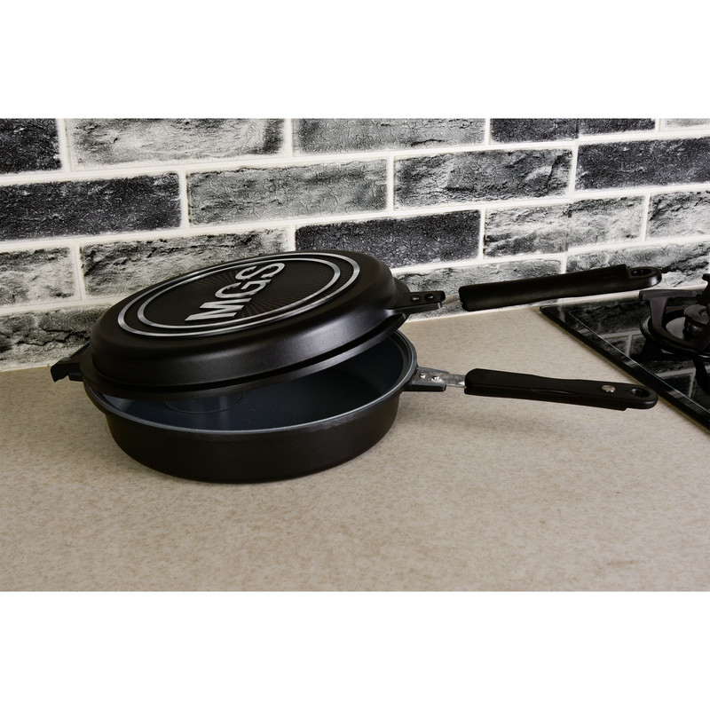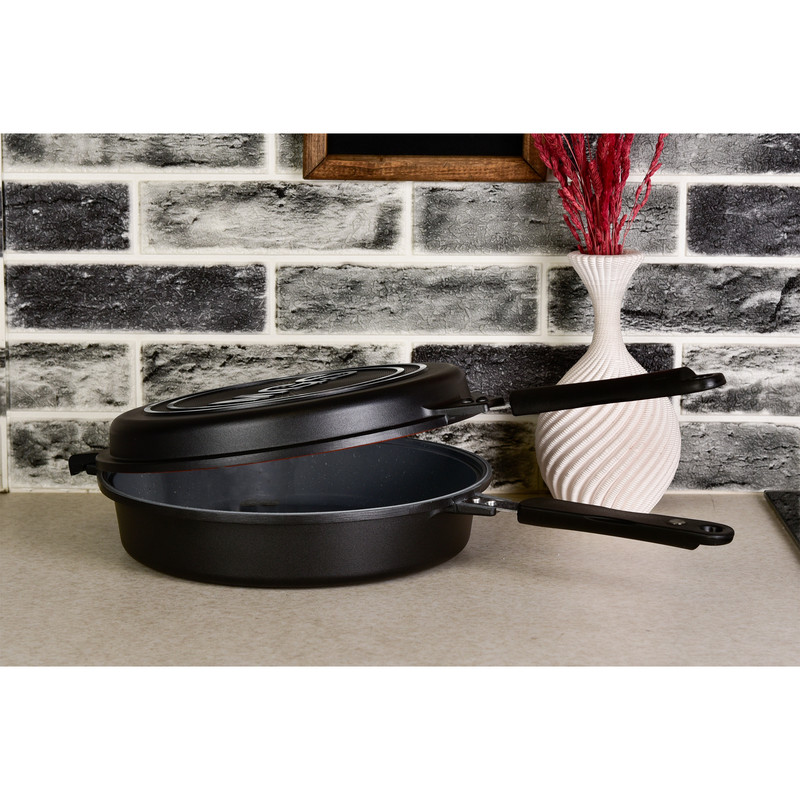 تابه رژیمی دو طرفه سایز 28 با دسته مغناطیسی به علت گریل بودن کف تابه، حداقل میزان روغن مصرفی را دارد. همچنین میتوان مواد غذایی را به راحتی با پشت و رو کردن تابه، زیر و رو کرد.