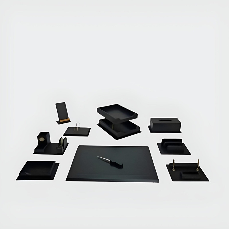 اگر به دنبال نظمدهی حرفهای به میز کار خود هستید، این ست 10 تکه لوازم اداری رومیزی انتخابی ایدهآل برای شماست. طراحی شیک و مینیمال با رنگ مشکی مات، جلوهای مدرن و حرفهای به فضای کاری شما میبخشد. جنس با کیفیت اجزای این ست دوام بالا و کارایی فوقالعادهای را تضمین میکند. اقلام موجود در این ست شامل: زیر دستی، جای خودکار، جاقلمی، جای موبایل، جاکاغذی، جای کاغذ یادداشت، جای کارت ویزیت، جای پوشه، پایه چسب و جعبه دستمال میباشد. این مجموعه کامل، تمام نیازهای رومیزی شما را پاسخ میدهد و به افزایش تمرکز و بهرهوری کمک میکند.