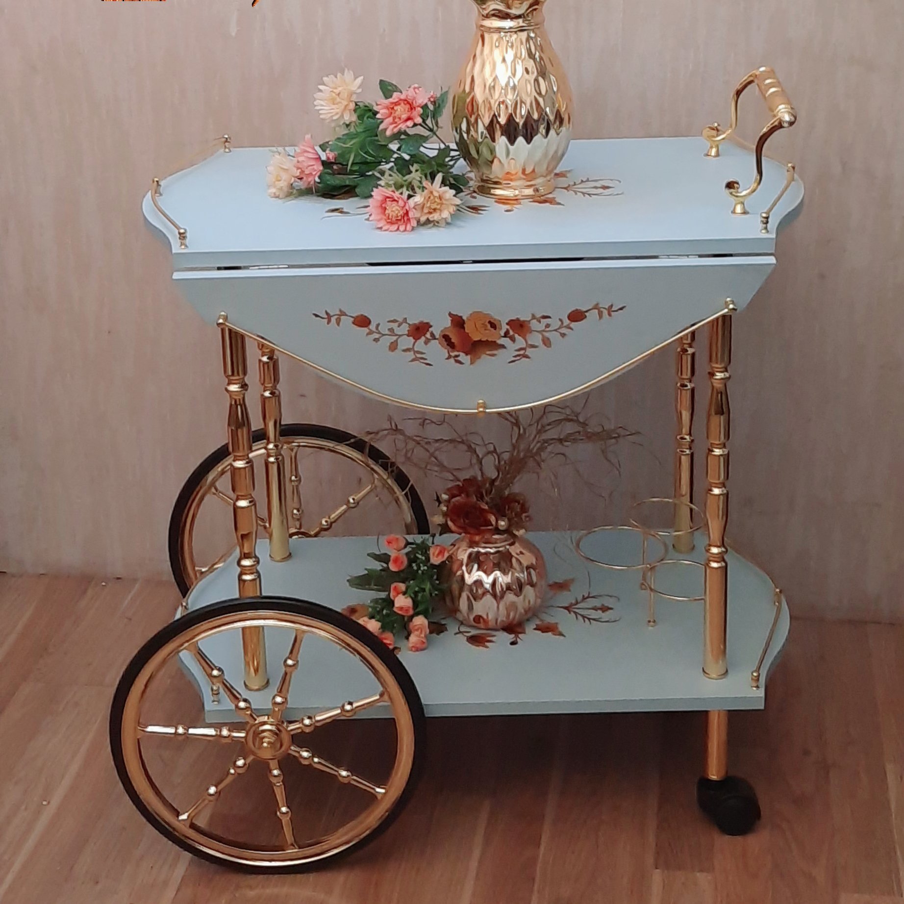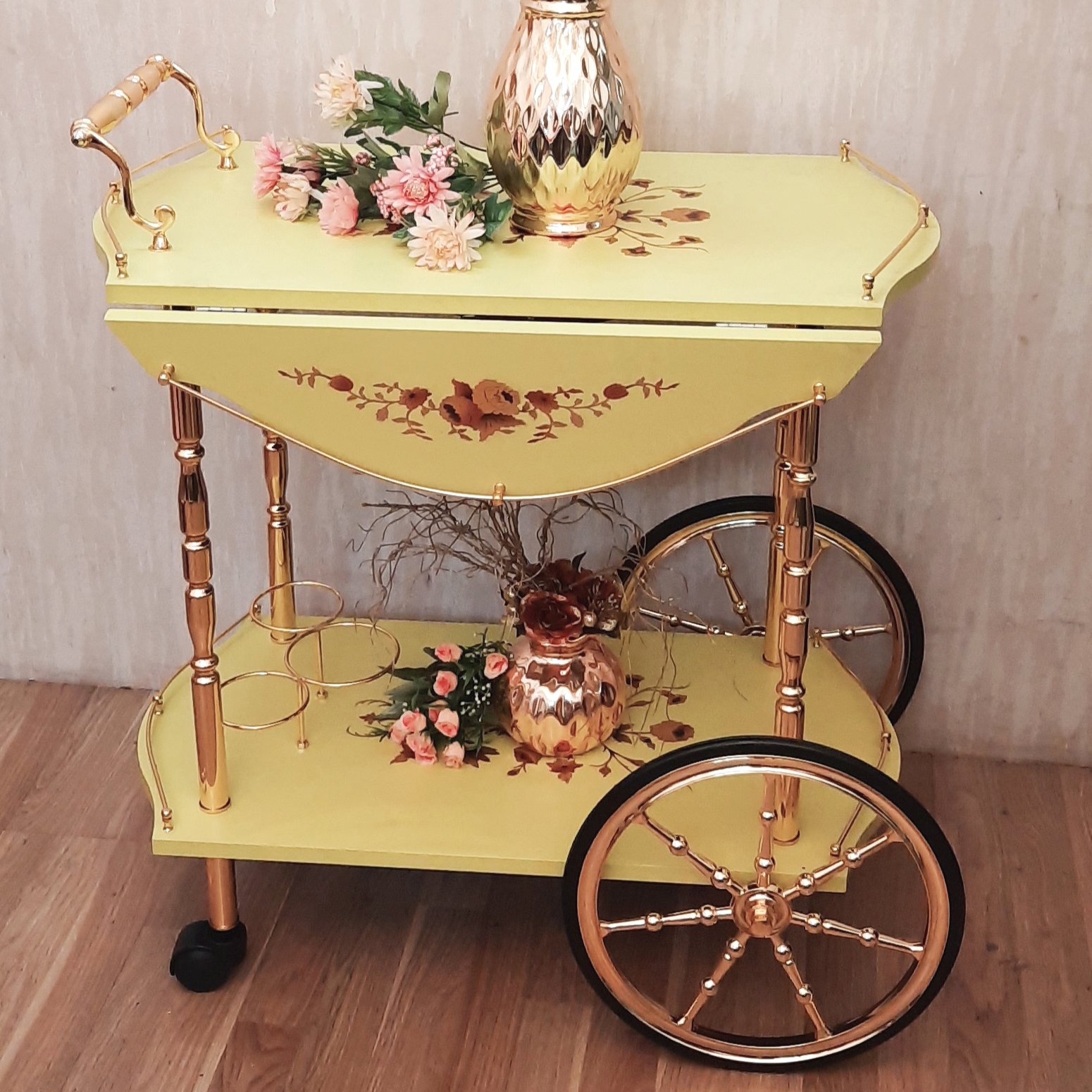 میز بار پذیرایی چرخدار پروانه زرد لیموئی ام دی اف مبلمونسرا مدل 218819