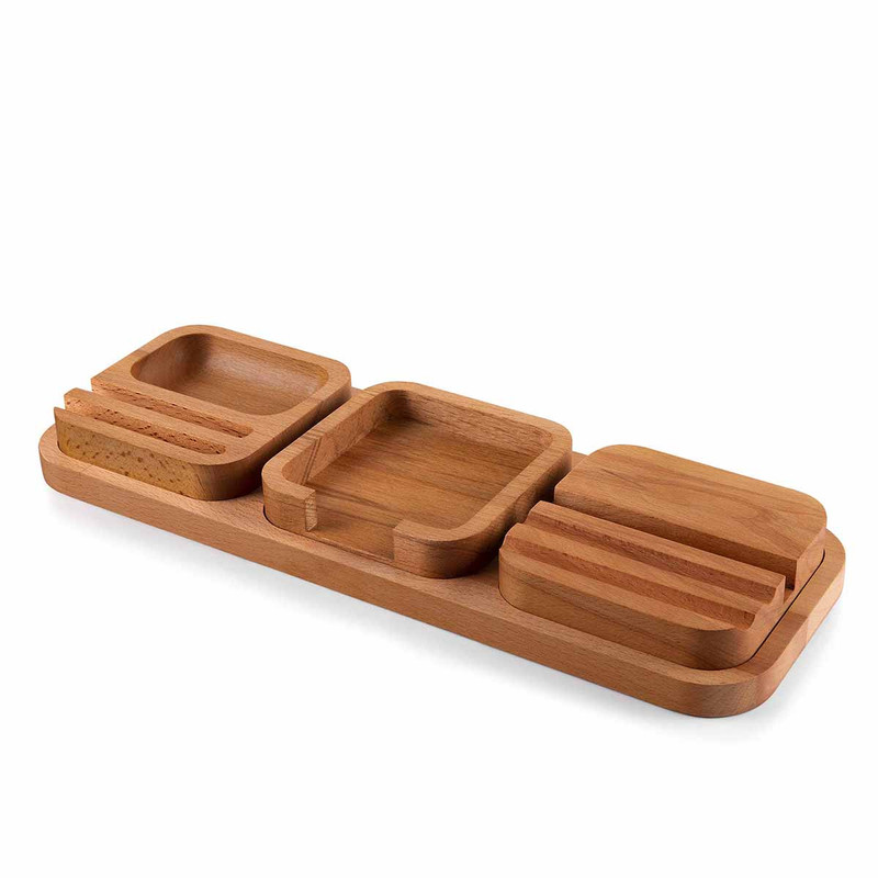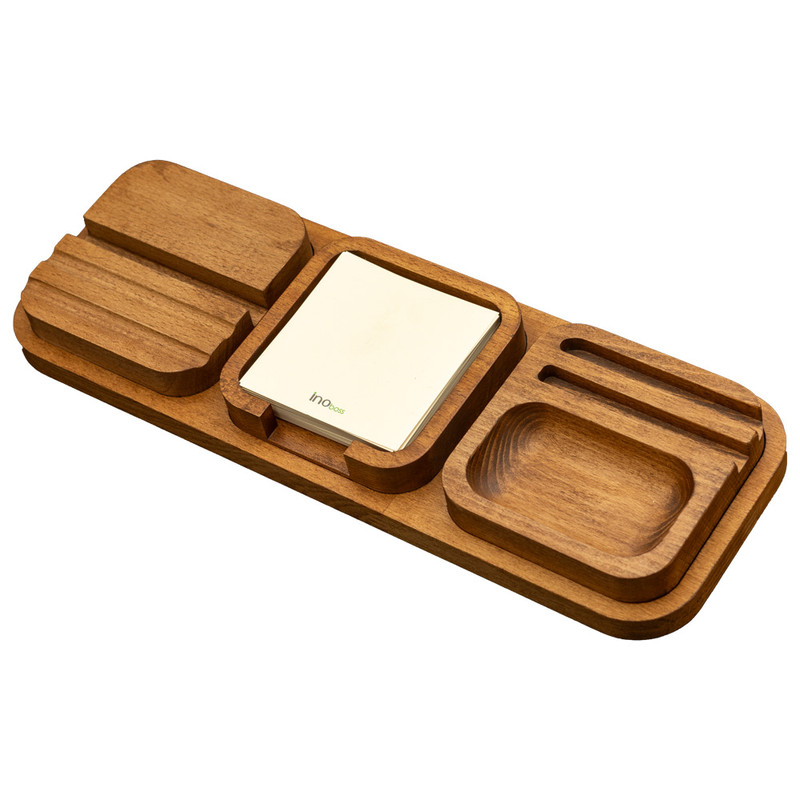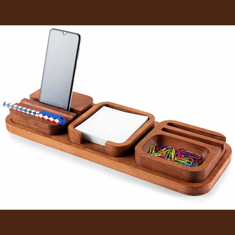 ست رومیزی اداری چوبی برای جاگیر کردن ابزار نوشتاری مانند خودکار، هولدر موبایل و کاغذ مورد استفاده قرار می گیرد. این ست ازجمله لوازم اداری پرکاربرد و مهم محسوب می شود. ست رومیزی مدیریتی یکی از اکسسوری های میز کار به حساب می آید. این ست دارای طرح ها، رنگ ها و اندازه های مختلفی می باشد. همچنین گفتنی است که این ست از متریال چوب راش که مدت حدود 15 سال به طور طبیعی خشک شده رویه این ست آغشته به یک نوع روغن گیاهی آلمانی به نام OSMAاست که این کالا را در برابر رطوبت و آب محافظت می کند معمولا از ست رومیزی بر روی میزهای مدیریت و میزهای اداری مورد استفاده می کنند. با وجود این ست شما با خیال راحت میتوانید لوازم اداری، ابزار نوشت ابزار را بر روی آن قرار بدید. همچنین با قرار دادن وسائل مورد نیاز و ضروری خود بر روی این ست از گم شدن آنها نیز جلوگیری می کنید.کی دیگر از ویژگی های خوب ست رومیزی این است که نقش پررنگ و مهمی در شیک شدن و زیبایی میز و دفتر شما ایفا می کند. و این موضوع خود مسئله مهمی برای پایان خوش ملاقات های کاری می باشد. پیشنهاد فروشگاه اینترنتی برایتو به شما عزیزان این است که اگر در یک اداره و یا شرکتی مدیریت آن مجموعه را بر عهده دارید حتما از ست رومیزی برای زیبایی و نگهداری وسائل مورد نیاز خود استفاده کنید.
