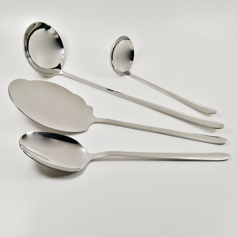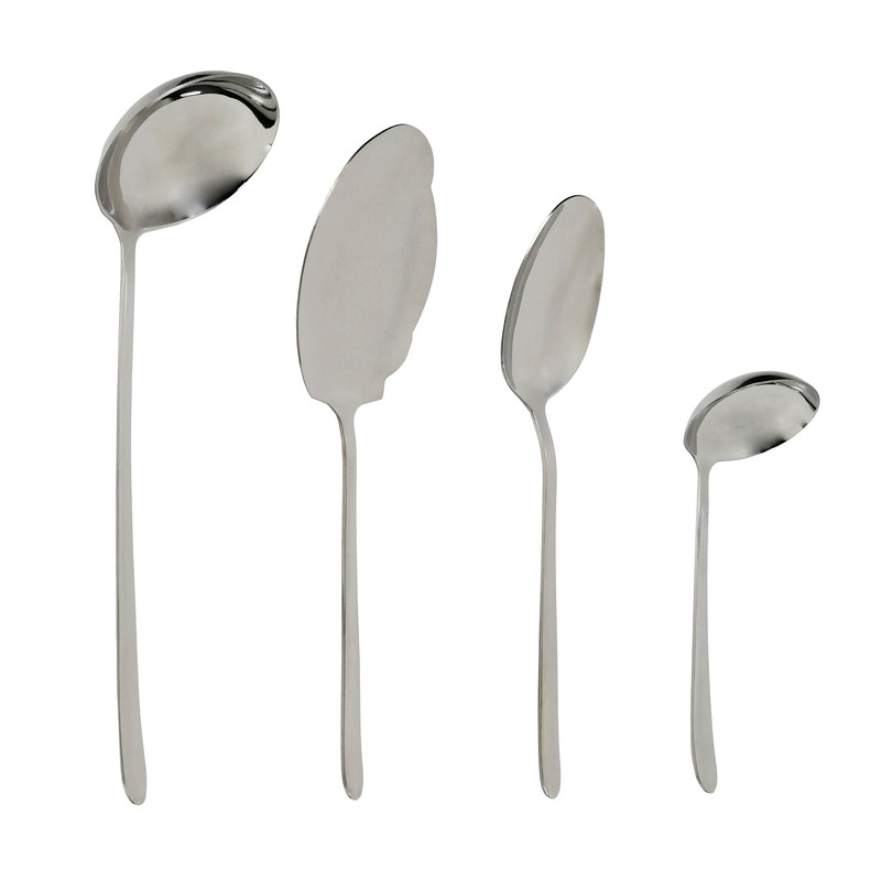 شامل یک عدد کفگیر ،یک عدد قاشق خورشت، یک عدد ملاقه سایز بزرگ و یک عدد ملاقه سایز کوچک.