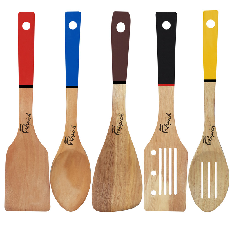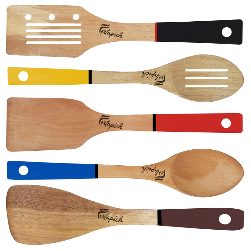 سرویس کفگیر و ملاقه 5 پارچه فرتاپیچ مدل چوبی کد 019 ملمونسرا مدل 204259