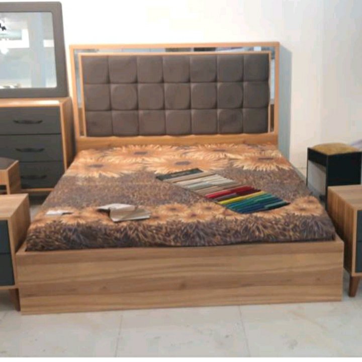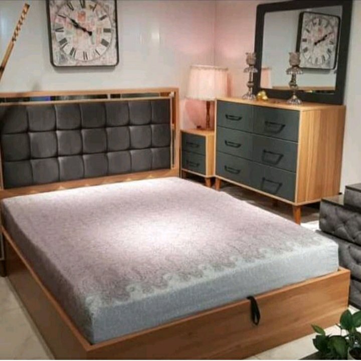 تخت خواب دونفره همراه با لوازم تخت قاب آینه دراور و دوتا پاتختی هس رنگ طبق تصویر ارسال به تمام نقاط کشور