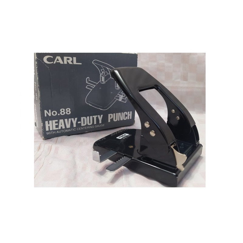 دستگاه پانچ رومیزی مدل CARL NO.88 وسیله ای مناسب جهت سوراخ کردن کاغذ به منظور قرار دادن در زونکن و جزء ملزومات دفاتر کار می باشد. که بدنه این پانچ تمام فلز و بسیار محکم است، دارای 2 عدد خط کش از جنس فلز برای تنظیم عرض کاغذ، با قابلیت تنظیم خودکار پانچ و قفل دسته. پایه ضد لغزش این سوراخ کن از دیگر مزایای این دستگاه می باشد. ظرفیت حداکثر 45 برگ با قطر سوراخ پانچ 6 میلی متر، فاصله بین دو پانچ 80 میلی متر می باشد و دارای محفظه پلاستیکی برای جمع آوری باقیمانده های کاغذ. این محصول ساخت کشور ژاپن است.