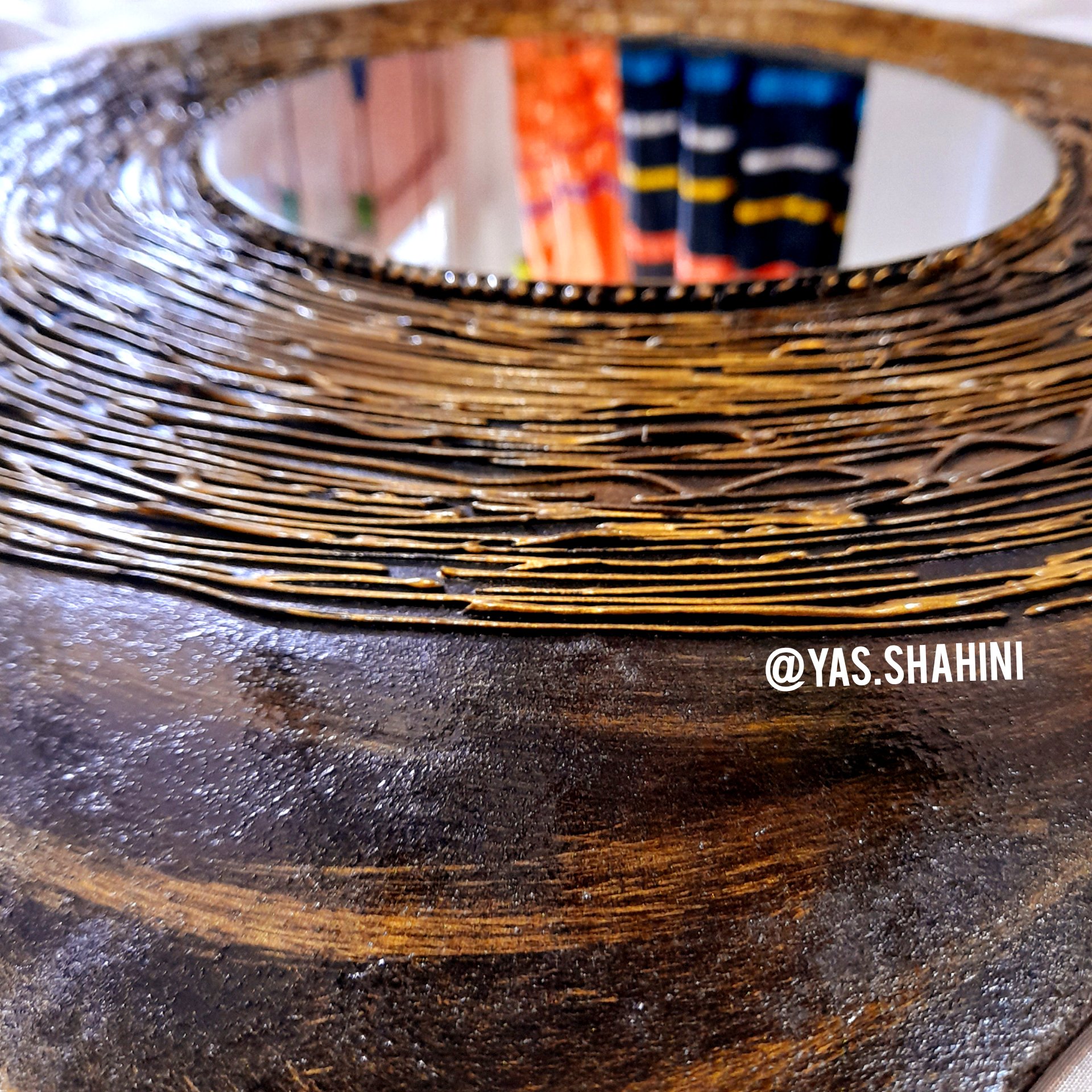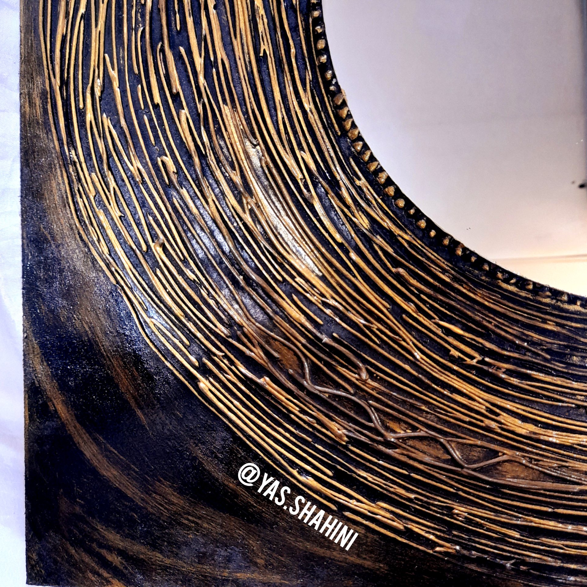 آیینه دکوراتیو .برجسنه کار شده . دارای گیره اویز دیواری . زمینه چوبی .کار دست . ابعاد بزرگ