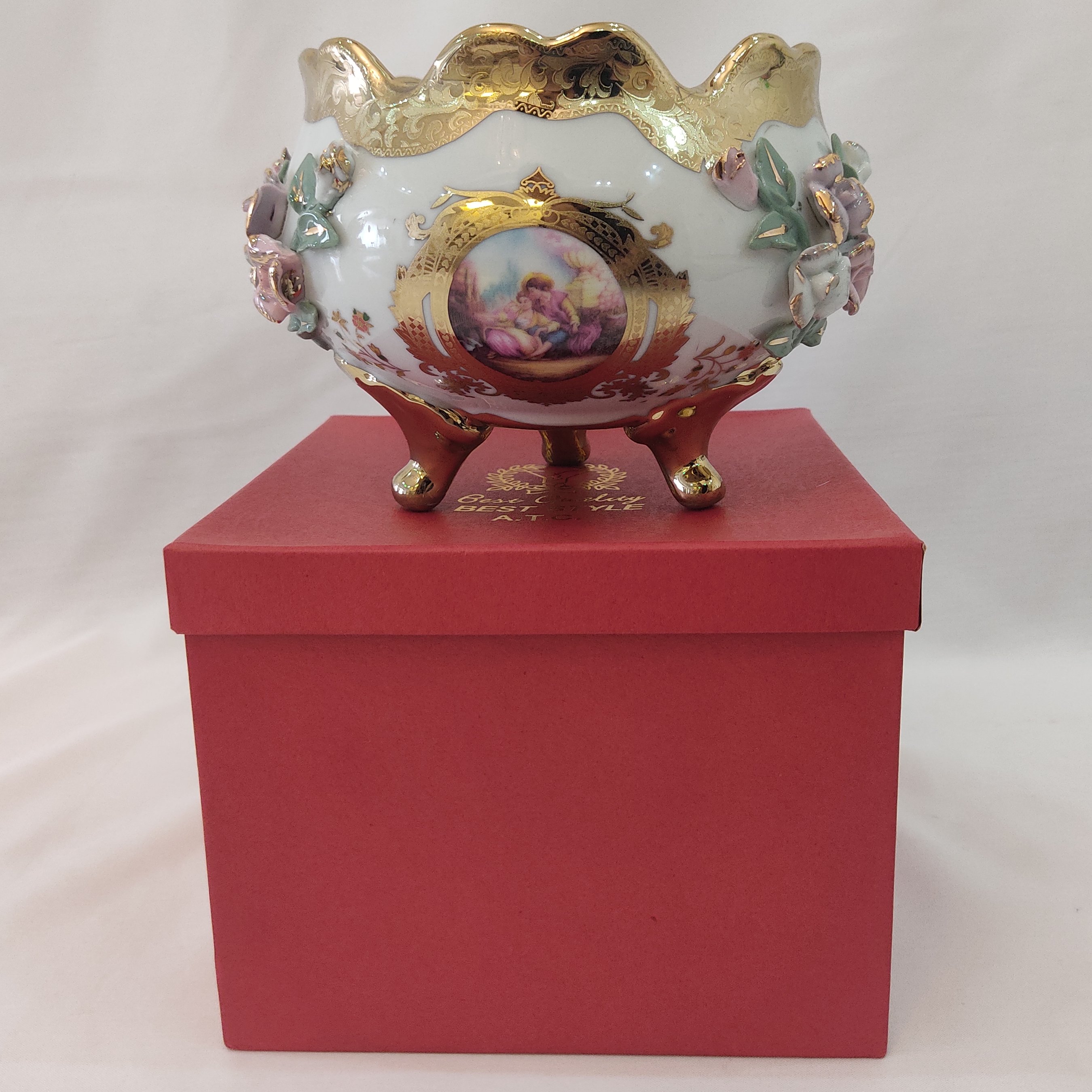 شکلات خوری سه پایه گل برجسته با جعبه کادویی