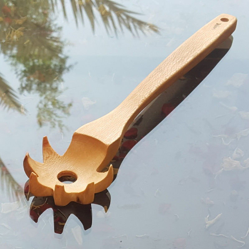 ست کفگیر ملاقه چوبی 7 پارچه ، محصولی با طراحی ترکیبی فانتزی و کلاسیک که زیبایی و جلوه ای منحصر به فرد را برای آن پدید آورده . 6 ابزار چوبی این ست شامل کفگیر برنج ، کفگیر کتلت برگردان ، کفگیر ماکارانی ، قاشق و چنگال آشپزی و ملاقه می باشد که همگی درون یک استند مکعبی شکل با امکان قرار گیری بر روی سطوح مختلف نظیر کابینت ، میز ، کنار اجاق گاز و ... جای داده می شوند . سرویس آشپزی تولید شده از جنس چوب مرغوب و باکیفیت می باشد که سطحی کاملاً سیقلی و یکدست برای استفاده آسان دارد . چوبی بودن ست ابزار ، قابلیت استفاده از آنها برای ظروفی نظیر تفلون با سطح داخل حساس در برابر خراشیدگی را نیز محیا نموده ، پس با خیالی آسوده از آن برای طبخ ، آماده سازی و یا حتی سرو غذا بر روی میز استفاده کنید.