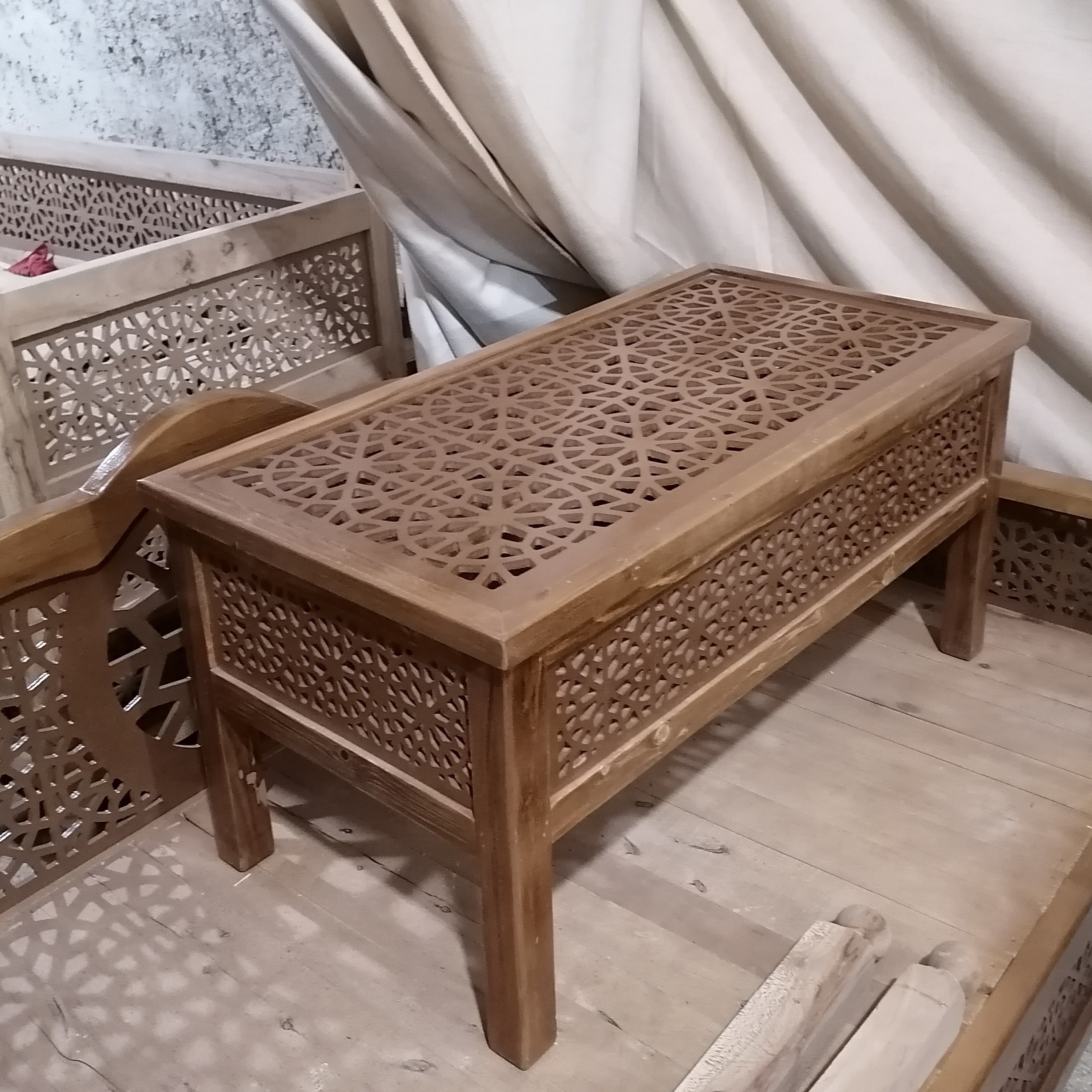 میز چوبی جلو مبلی سایز 100 در 50 سانت مناسب برای میز پذیرایی از مهمان تولید کننده انواع تخت سنتی و مبلمان سنتی با ب