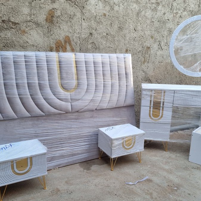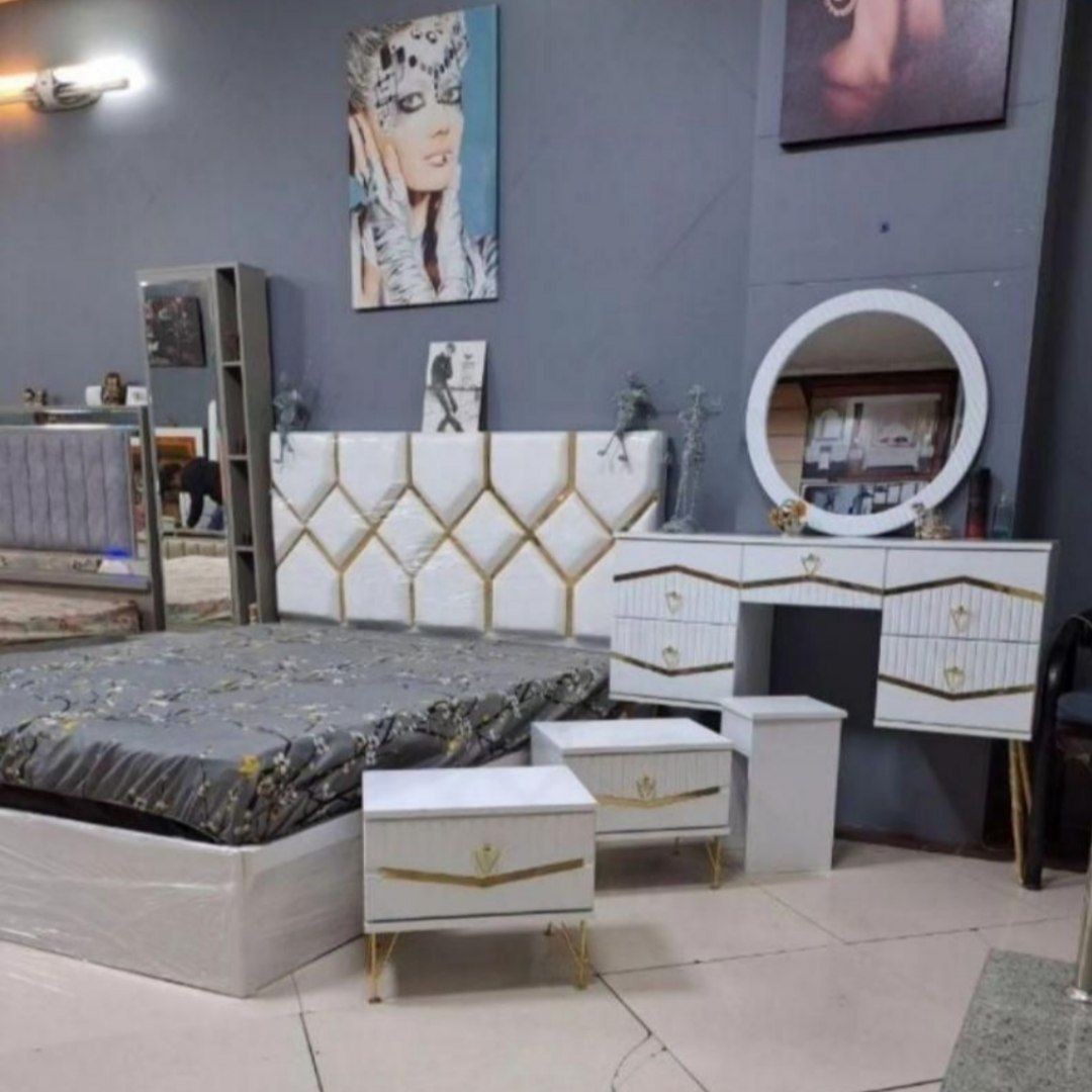 سرویس خواب تخت پاتختیا میزارایشی وصندلی وکفی تخت لمسه پارچه جاسمین دقیقامطابق تصویر نمونه کارموجوده رنگ بندی به سلیقه ی مشتری ارسال باباربری هزینه به عهده ی مشتریه