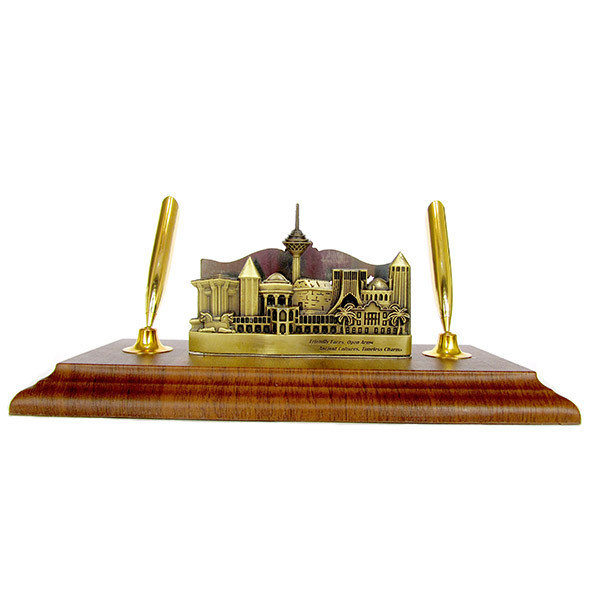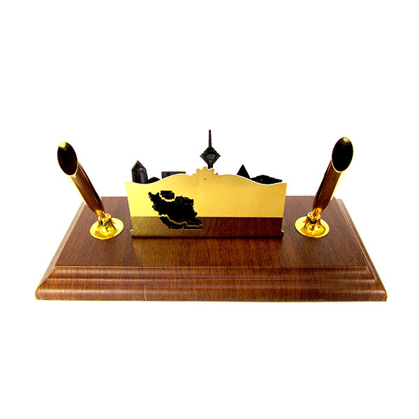ست نفیس مدیریتی رومیزی شامل دو جاقلمی و نگهدارنده کارت ویزیت که امکان درج نام و نشان سازمانی را در قسمت پشت دارا می باشد. پایه از جنس چوب و در دو رنگ مشکی و گردویی قابل عرضه می باشد. بخش جلوی محصول از نمادهای میراث تاریخی و فرهنگی ایران بهره برده است که علاوه بر ایجاد جلوه و شکوه خاص بر روی میز استفاده کننده، موجب ایجاد حس غرور و عظمت در فرد و مخاطبین خواهد گردید.