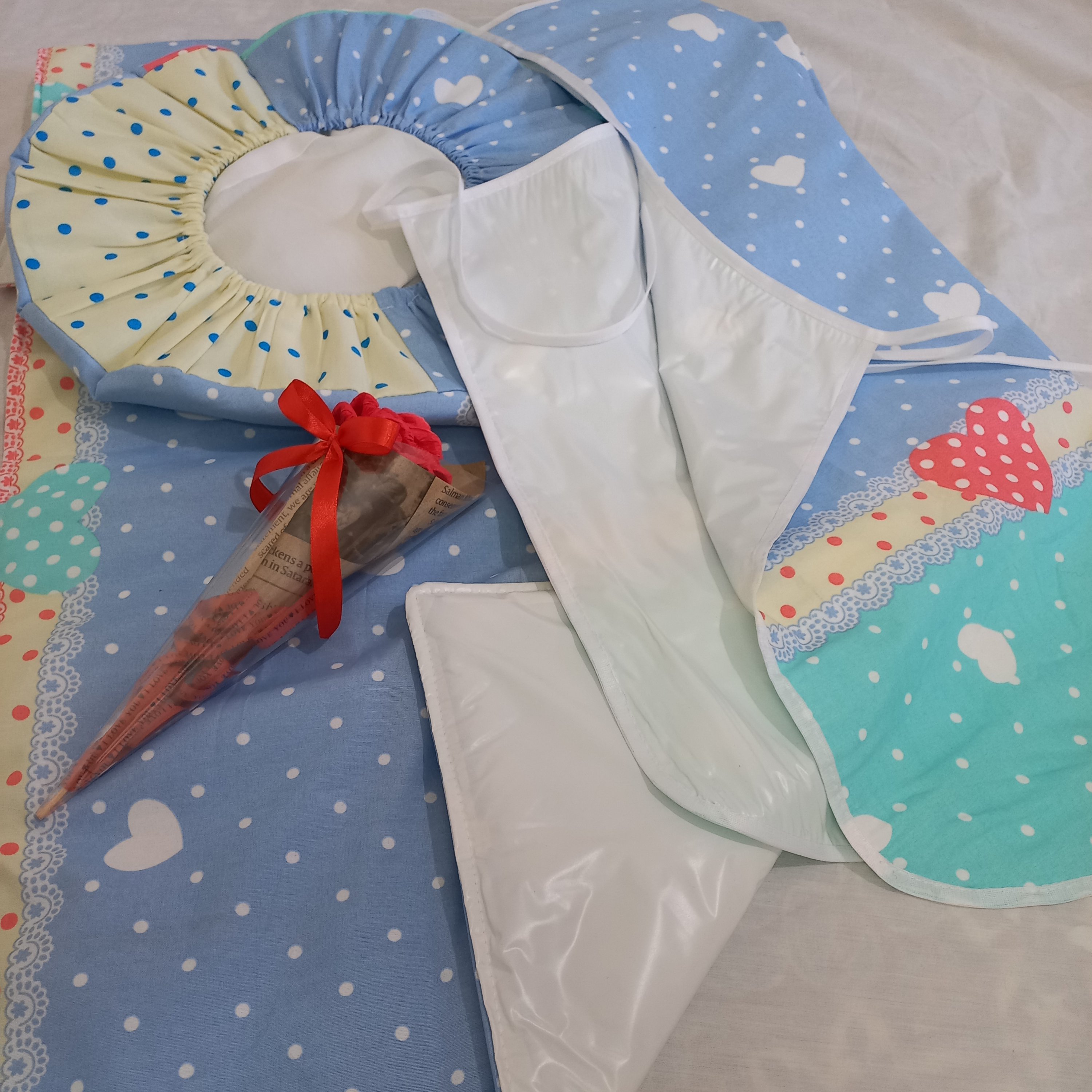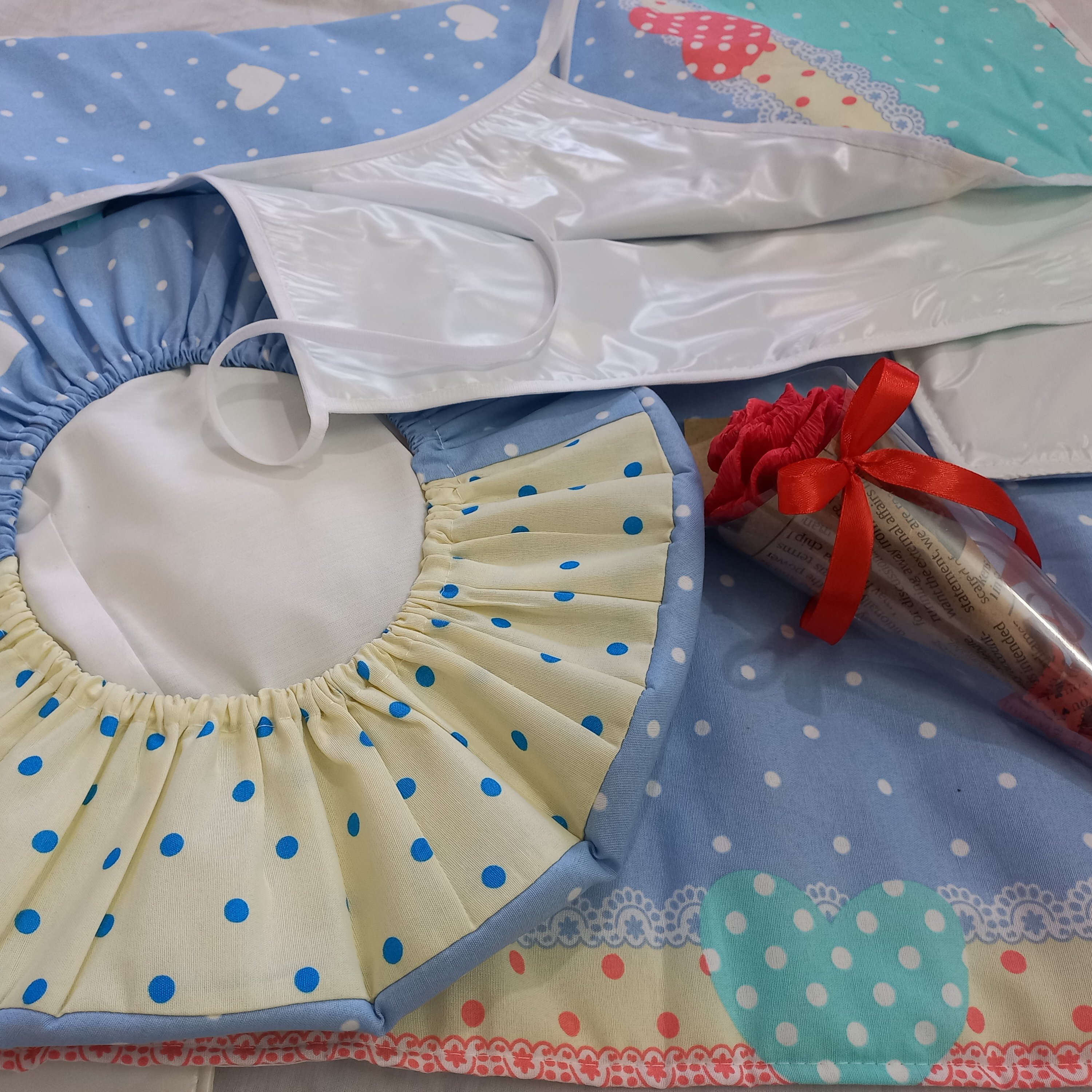 یک عدد پیشبند به همراه یک عدد دم کنی ونم گیر سایز بزرگ بادوخت بسیار عالی و مقاوم پیشبند با دور دوزی نوار اریب با کیفیتی خوب ومناسب با پارچه ای زیبا ومقاوم داخل دم کنی از ابر مقاوم ومناسب دم کنی استفاده شده در ضمن پیشبند زد آب و فر سایز می باشد