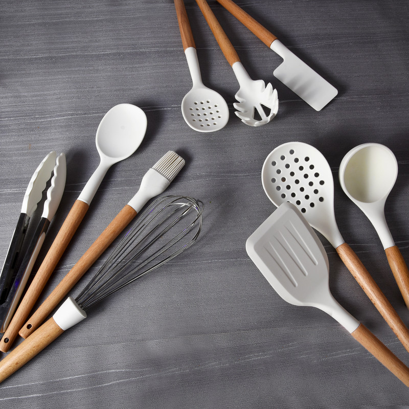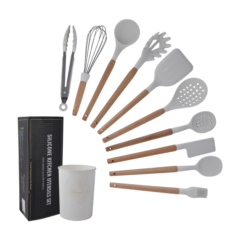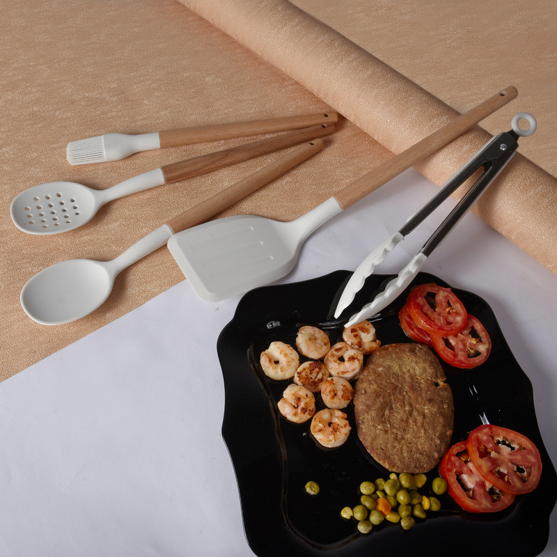 ست کفگیر و ملاقه سیلیکونی از بهترین مواد با کیفیت بالا انتخاب شده و سیلیکون بدون BPA( این ماده شیمیایی باعث مشکلات قلبی عروقی، از جمله بیماری عروق کرونر قلب، آنژین، حمله قلبی، فشار خون بالا و بیماری عروق محیطی میشود که این سرویس این ماده را در ترکیب خود ندارد).با استفاده از مواد درجه بندی شده، مجموعه ظروف ما وزن تعادل کاملی را فراهم می کند، به راحتی در دست است و برای پخت و پز بسیار کاربردی است.سیلیکون مواد غذایی یکی از سازگارترین مواد با محیط زیست است. غیر سمی، بی بو و بسیار شفاف است.ست ظروف آشپزخانه سیلیکونی در برابر گرما و سرما از 40 درجه تا 230 درجه مقاومت بیشتری دارد.این ماده سیلیکونی خاص انعطاف پذیری بالایی دارد، سطح نرم آن از خراشیدگی، خراشیدگی یا آسیب رساندن به ظروف شما جلوگیری می کند و گرانین ها را لکه نمی کند، تمیز کردن و ی ظروف را آسان می کند.همچنین در هنگام پخت و پز از سر و صدای کمتری برخوردار است