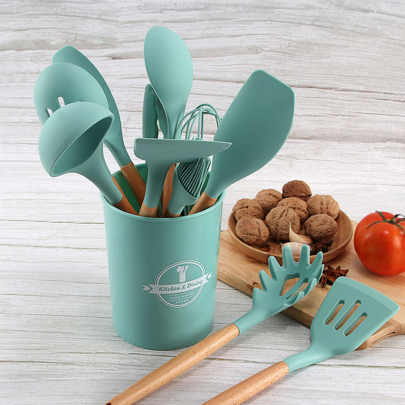 سرویس کفگیر Kitchen Dining ساخته شده از با کیفیت ترین مواد سیلیکون با استاندارد FDA و بدون BPM ، دسته های چوبی از جنس بامبو و یک ظرف نگهدارنده از جنس پلاستیک میباشد. این سرویس از وزن متعادل و دیزاین منحصر بفردی برخوردار است که باعث میشود در دست گرفتن آن آسان و پخت و پز را راحت می کند. سیلیکون به کار رفته در این محصول ساخته شده از مواد غیر سمی ، بی بو و سازگار با محیط زیست است. این مجموعه وسایل آشپز خانه در برابر درجه حرارت سرما تا 30- و گرما 230+ درجه سانتی گ مقاومت دارد. انعطاف پذیری ، رویه های نرم از خراشیدن و آسیب رساندن به ظروف شما جلوگیری میکند و همچنین باعث کاهش سر و صدا هنگام آشپزی می شود. این مجموعه متشکل از 11 عدد کفگیر ملاقه و 1 عدد ظرف نگهداره می باشد.