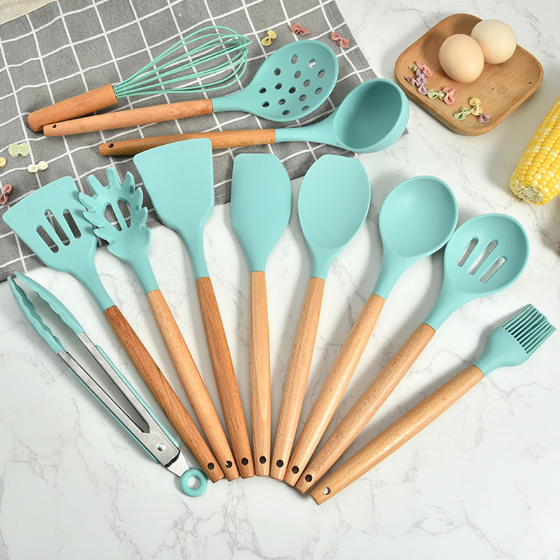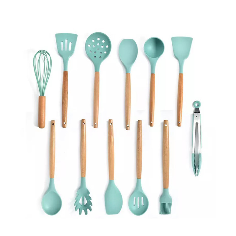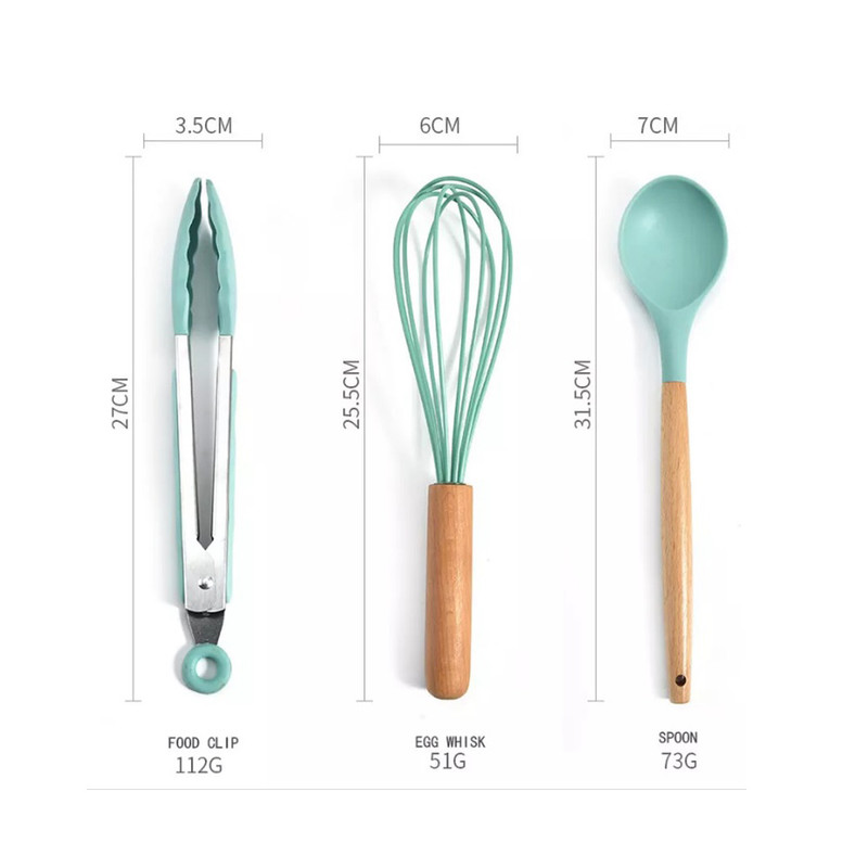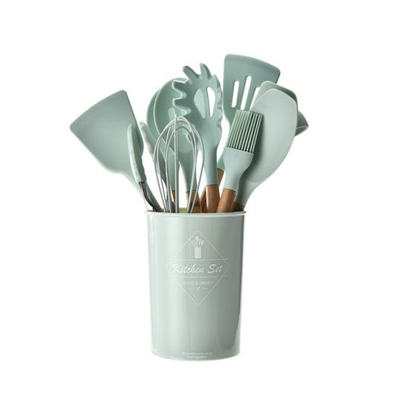 سرویس کفگیر Kitchen Set ساخته شده از با کیفیت ترین مواد سیلیکون با استاندارد FDA و بدون BPM ، دسته های چوبی از جنس بامبو و یک ظرف نگهدارنده از جنس پلاستیک میباشد. این سرویس از وزن متعادل و دیزاین منحصر بفردی برخوردار است که باعث میشود در دست گرفتن آن آسان و پخت و پز را راحت می کند. سیلیکون به کار رفته در این محصول ساخته شده از مواد غیر سمی ، بی بو و سازگار با محیط زیست است. این مجموعه وسایل آشپز خانه در برابر درجه حرارت سرما تا 30- و گرما 230+ درجه سانتی گ مقاومت دارد. انعطاف پذیری ، رویه های نرم از خراشیدن و آسیب رساندن به ظروف شما جلوگیری میکند و همچنین باعث کاهش سر و صدا هنگام آشپزی می شود. این مجموعه متشکل از 11 عدد کفگیر ملاقه و 1 عدد ظرف نگهداره می باشد. این مدل از سرویس کفگیر برنج را اضافه دارد