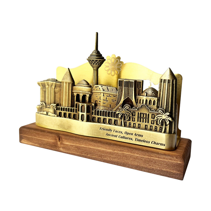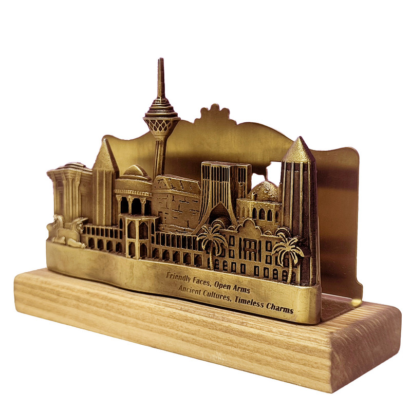 جای کارت رومیزی ریما مدل ایران علاوه بر اینکه در نظم بخشی بهتر کارت ویزیت یا کاغذ یادداشت و آراستگی میز شما تاثیر زیادی دارد؛ ویژگیهای خاص و منحصر به فرد دیگری نیز دارد که در ادامه به معرفی آنها خواهیم پرداخت. بعنوان نمونه از ویژگی های خاص آن، به طراحی منحصر به فرد آن می توان اشاره کرد که چشم بیننده را خیره می نماید. طراحی رخ محصول ترکیب هنرمندانه ای از 11 نماد ملی، فرهنگی، تاریخی و گردشگری ایران شامل برج میلاد، برج آزادی، سی و سه پل اصفهان، باغ ارم شیراز، آرامگاه ابن سینا، آرامگاه سعدی، مقبره کورش، گنبد سلطانیه، مرغ هما و ... است که همهی ایرانیان با آنها مأنوسند و در نتیجه در نگاه بیننده و مخاطب، جلوه خاصی از شکوهی و افتخار را تداعی می نماید. ظرافت های به کار رفته در قسمت پشت را نیز نمی توان از نظر دور داشت، در قسمت پشت که از جنس استیل طلایی رنگ و آئینه ای می باشد؛ نقشه زیبای ایران با ظرافتی خاص برش خورده و نماد گل لوتوس نیز در قسمت بالایی کار جلوه گری می کند؛ تمامی این زیبایی ها با مصرع معروفی از ابوالقاسم فردوسی -شاعر نامدار ایران- مصرع شده و محصول را به هدیه ای خاص و منحصر به فرد و البته فاخر و بی نظیر بدل نموده است.;چو ایران نباشد تن من مباد .. با این اوصاف، میتوان جای کارت رومیزی ریما مدل ایران را به عنوان یک هدیه ارزشمند و البته ماندگار برای عزیزان و ایران دوستان دانست که هم به عنوان یک وسیله دکوری زیبا و هم به مناسبت هایی همچون هدیه تولد، روز مهندس، روز معلم، روز پدر، تبریک انتصاب و کادوی منزل نو و نظایر آن می تواند مورد استفاده قرار گیرد و سالها در قاب نگاه مخاطب یادآور محبت و لطف هدیه دهنده باشد