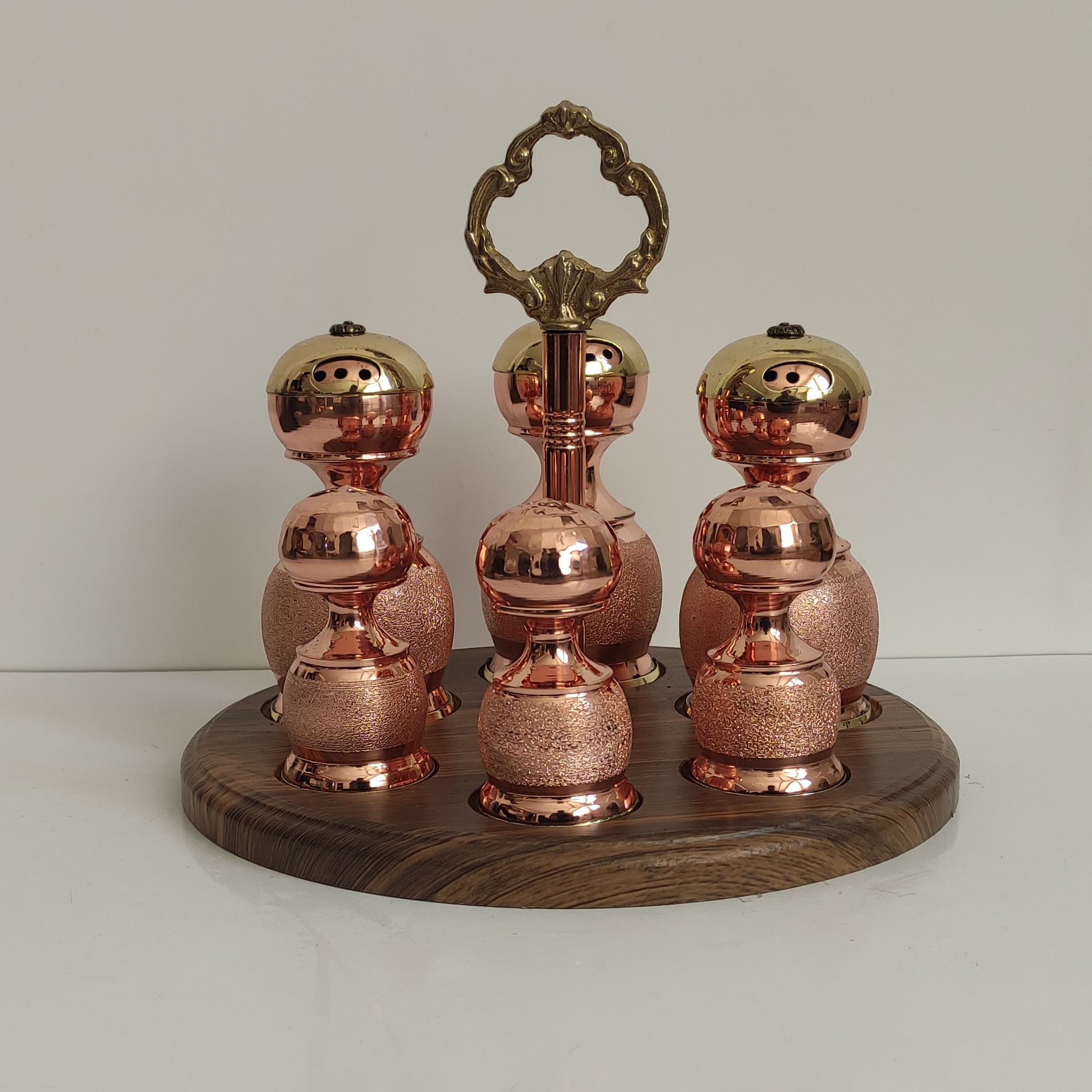 ست نمک پاش و ادویه پاش مسی استندار نانو شده ساخت زنجان مبلمونسرا مدل 289915