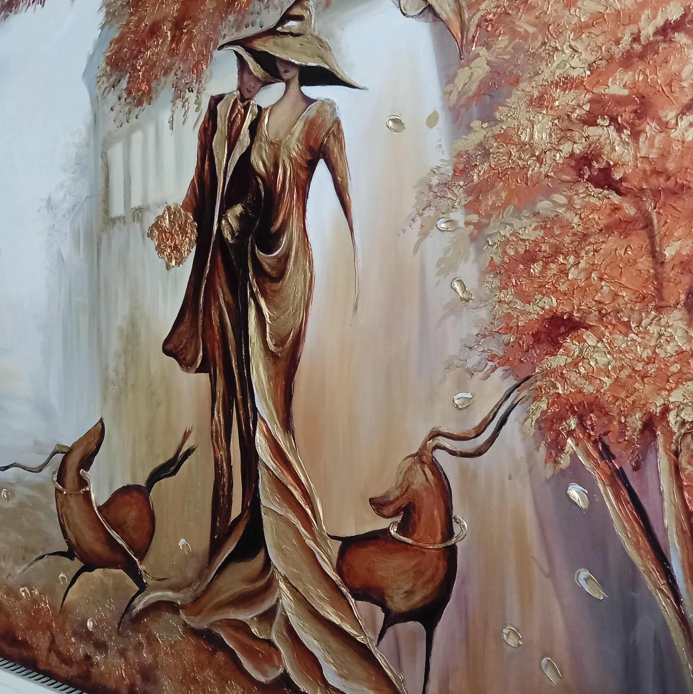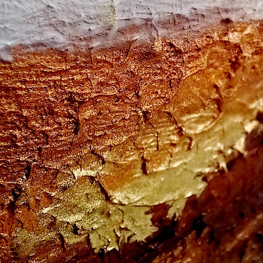 تابلو رنگ روغن و کار شده با خمیر تکسچر به صورت برجسته . تکنیک ورق طلا و ورق مس یک تابلو کاملا لوکس برای دکور منزل زیباتون ابعاد 140_80