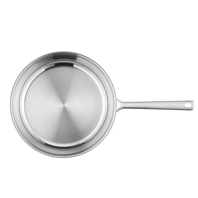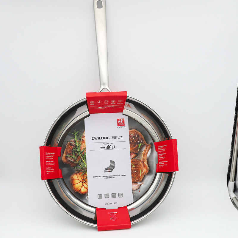 تابه مدل ZWILLING TrueFlow سایز 28 تمام استیل با دسته بسیار محکم و مقاوم از مجموعه ی ظروف TrueFlow از برند آلمان می باشد . استفاده آسان چند منظوره از این تابه شمارو به وجد می آورد و در کار و زمان شما صرفه جویی می کند . برای تولید از استیل ضد زنگ 18/10 استفاده شده است که بهداشتی و بدون مزه است و مزه غذا را تغییر نمی دهد و صد در صد بهداشتی و فاقد مواد شیمیایی می باشد و تمیز کردن آن بسیار آسان است . مزیت این تابه پایه سه لایه SIGMA CLASSIC PLUS که برای انواع اجاق از جمله القایی مناسب است . یک لایه آلومینیومی مقاوم که با فولاد ضد زنگ مغناطیسی کروم پوشانده شده است و گرما را به خوبی ذخیره و توزیع می کند . استیل ضد زنگ 18/10 با کیفیت بالا مستحکم و در برابر خط و خش مقاوم است . قابلیت شستشو در ماشین ظرفشویی و با دست می باشد . تا 200 درجه سانتی گراد تحمل دما دارد و همچنین قابل استفاده در فر می باشد . برای سرخ کردن مواد غذایی صبر کنید تا روغن کاملا داغ شود و سپس با خیال راحت مواد غذایی را بدون اینکه به کف آن بچسبد سرخ کنید .