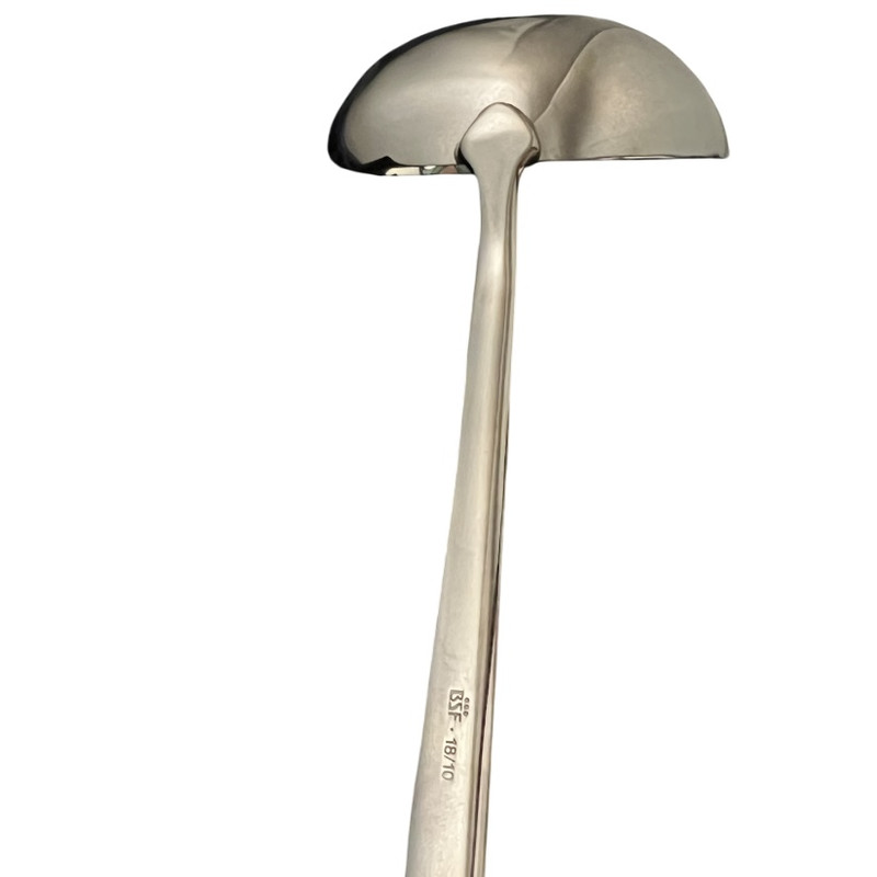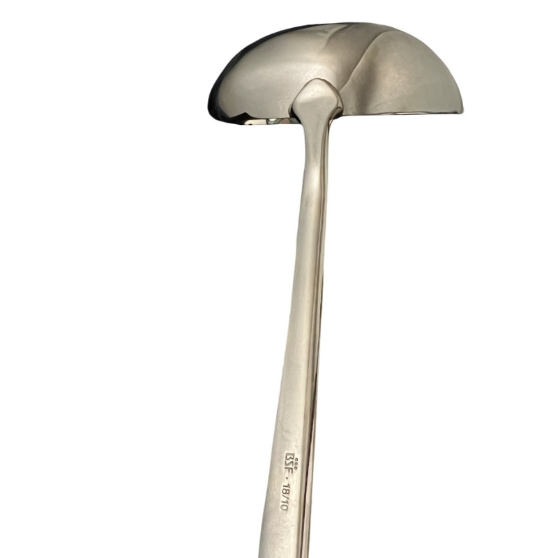 بی اس اف برندی آلمانی و زیر مجموعۀ برند زولینگ جی ای هنکلز است که قاشق و کارد و چنگال تولید می کند. محصولات این برند به کیفیت ممتاز و طراحی مدرن شهرت دارند و برندی است که دامنه محصولات آن از قاشق و چنگال کودک تا اع هدیه ها شگفت زده تان خواهد کرد. تازگی طرح های بی اس اف در خلق قاشق، کارد و چنگال غذاخوری می تواند هر سلیقه ای را برآورده کند و البته سرویس های غذاخوری بی اس اف با بهترین کیفیتی که از این برند انتظار می رود در اختیار شما قرار می گیرد. مجموعه دوعددی ملاقه BSF از استیل ضد زنگ بسیار با کیفیت ۱۸,۱۰ تولید می شوند که نه تنها با دوام هستند، بلکه ظاهری فوق العاده زیبا دارند. این محصول در دو سایز است برای سرو اع سس، سوپ، آش و یا اع غذاهایی که قابلیت سرو با ملاقه دارند، مناسب است. این ملاقه ها مدل و از استیل براق هستند که جلوه ای خاص به پذیرایی از میهمانان شما میدهند. این محصول ساخت اصل کشور آلمان بوده و استانداردهای روز اروپا را داراست.