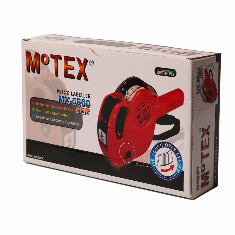 دستگاه قیمت زن موتکس MX-5500 محصول کشور کره جنوبی بوده و اورجینال میباشد. این محصول از جنس پلاستیک ساخته شده و سبک میباشد. با دستگاه قیمت زن موتکس دیگر احتیاجی به پرداخت هزینه های سنگین لیبل پرینترها نیست. این محصول شما را در امر قیمت گذاری محصولات بخوبی یاری میدهد. برای انتخاب عدد مورد نظر پین پلاستیکی را به بیرون کشیده و با توجه به شاخص زردی که بروی ستون اعداد قرار میگیرد اقدام به چرخاندن آن بکنید تا عدد مورد نظر مقابل شاخص قرار بگیرد . جهت پیمایش بین ستون اعداد کافی است پین را به داخل فشرده و یا بیرون آورید. رول جوهر این دستگاه امکان شارژ و یا تعویض را نیز دارد. همچنین در بسته بندی محصول یک رول جوهر یدک در نظر گرفته شده است. که میتوان با باز کردن پوشش قسمت جوهر دستگاه و بیرون کشیدن رول قبلی رول جدید را جایگزین کرد. (برای اینکار از دستکش استفاده نمایید). داخل دستگاه قیمت زن موتکس یک رول کاغذ قیمت زن نیز موجود میباشد. که برای تعویض آن کافیست درب پایینی دستگاه را با استفاده از کشیدن به عقب دو زائده جانبی باز کرده که به محض بازکردن زبانه ای که رول بروی آن قرار میگیرد با فشار فنر آزاد شده و کاغذ آزاد می شود. حال درب بالای دستگاه را به آرامی گشوده و رول جدید را جایگزین کرده سپس لبهی کاغذ رول را از قسمتی که به پایین دستگاه راه دارد عبور داده و درب بالایی دستگاه را میبندیم. ادامهی کاغذ را از پایین کشیده تا جایی که به اهرم دستگاه برسد. اکنون با فشار کم زبانه ای که با فشار فنر باز شده بود را میفشاریم تا صدای قفل شدن آن را بشنویم سوراخهای کاغذ را بروی خارهای غلطک انتهایی جاگذاری کرده و درب این قسمت را به آرامی میبندیم.