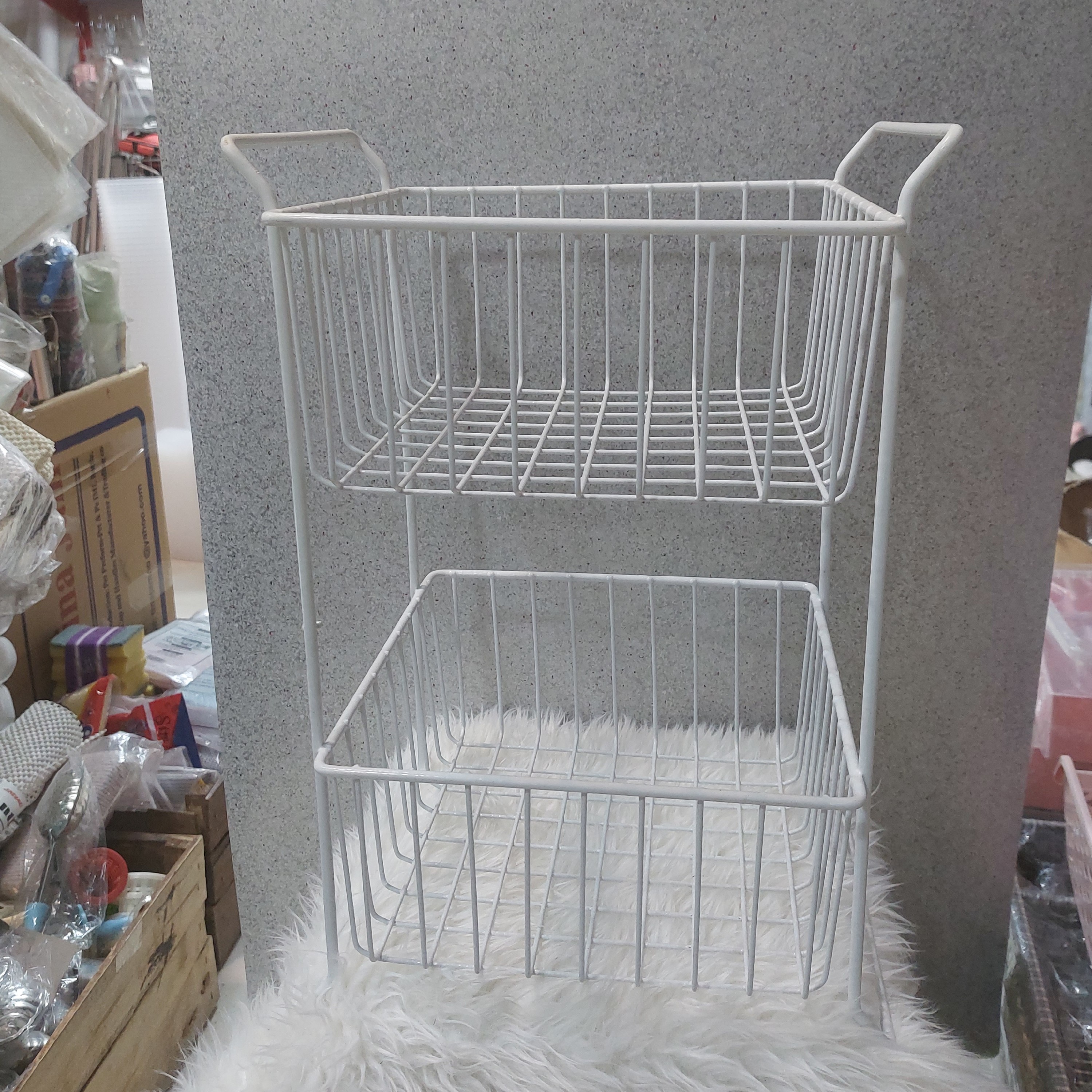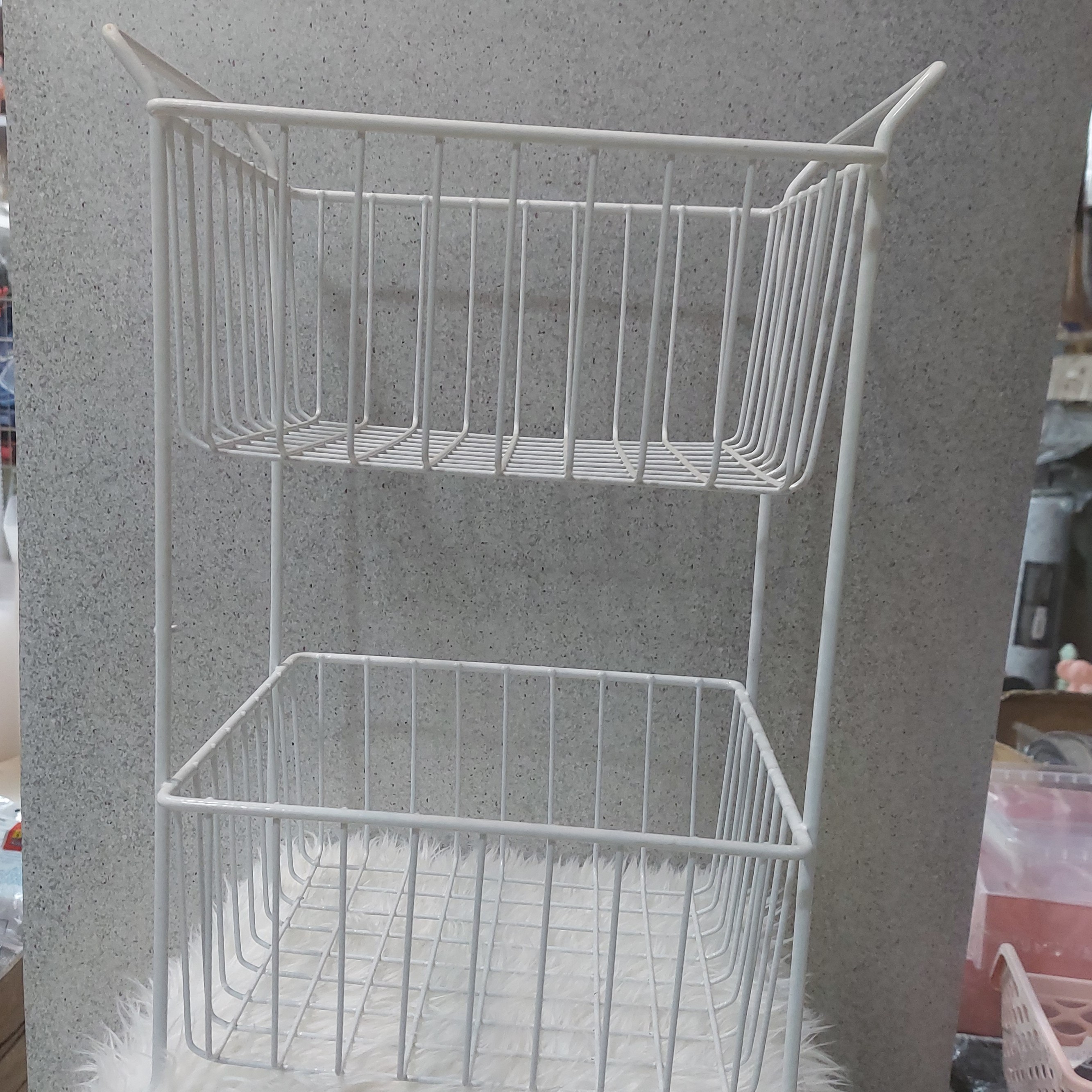 سبد سیبزمینی پیاز دو طبقه فلزی شارژ مجدد ساخته شده از فلز آلیاژ قوی ابعاد ارتفاع ۴۳ سانت در عرض ۲۵ ابعاد هر سبد ۲۵در۲۵و در عمق ۱۲ سانتی متر