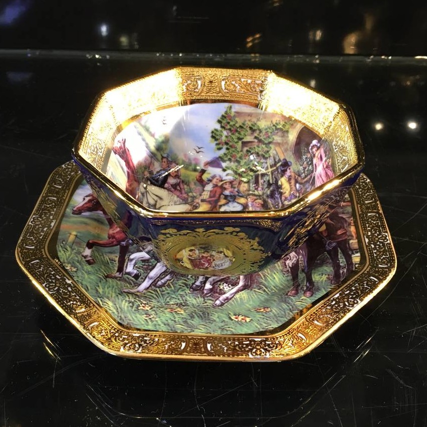 ست پیش دستی پیاله میوه خوری آجیل خوری طرح طلاکوب اعلا بدرقه عروس چینی طرح زیبا ارسال تمام نقاط مبلمونسرا مدل 264863