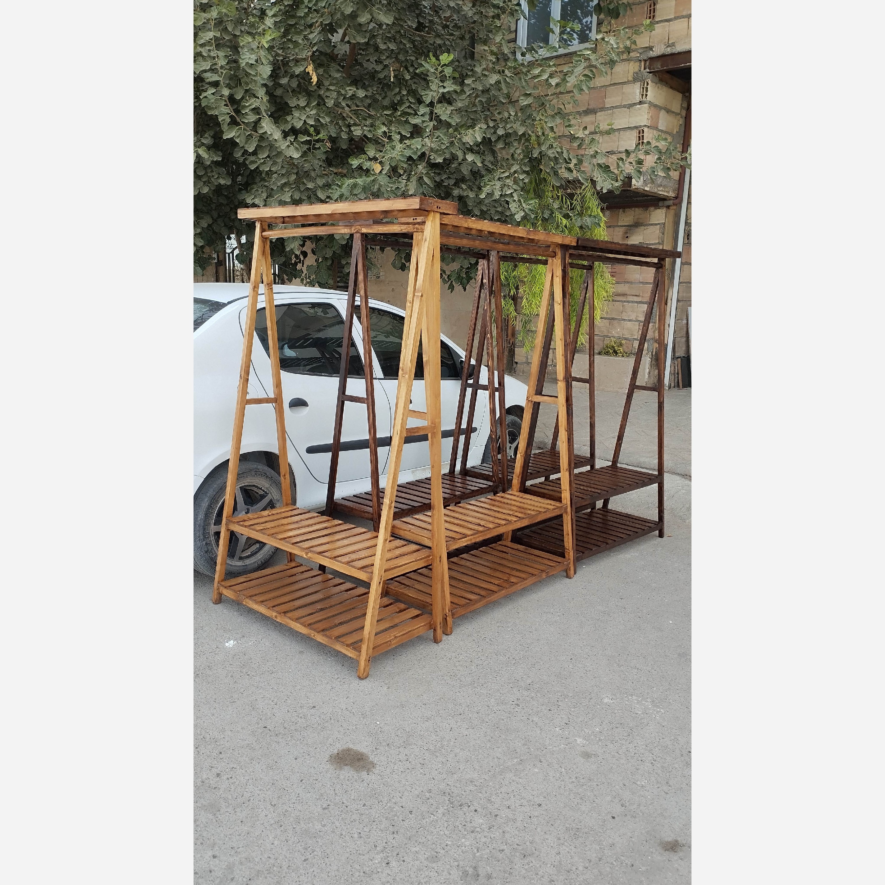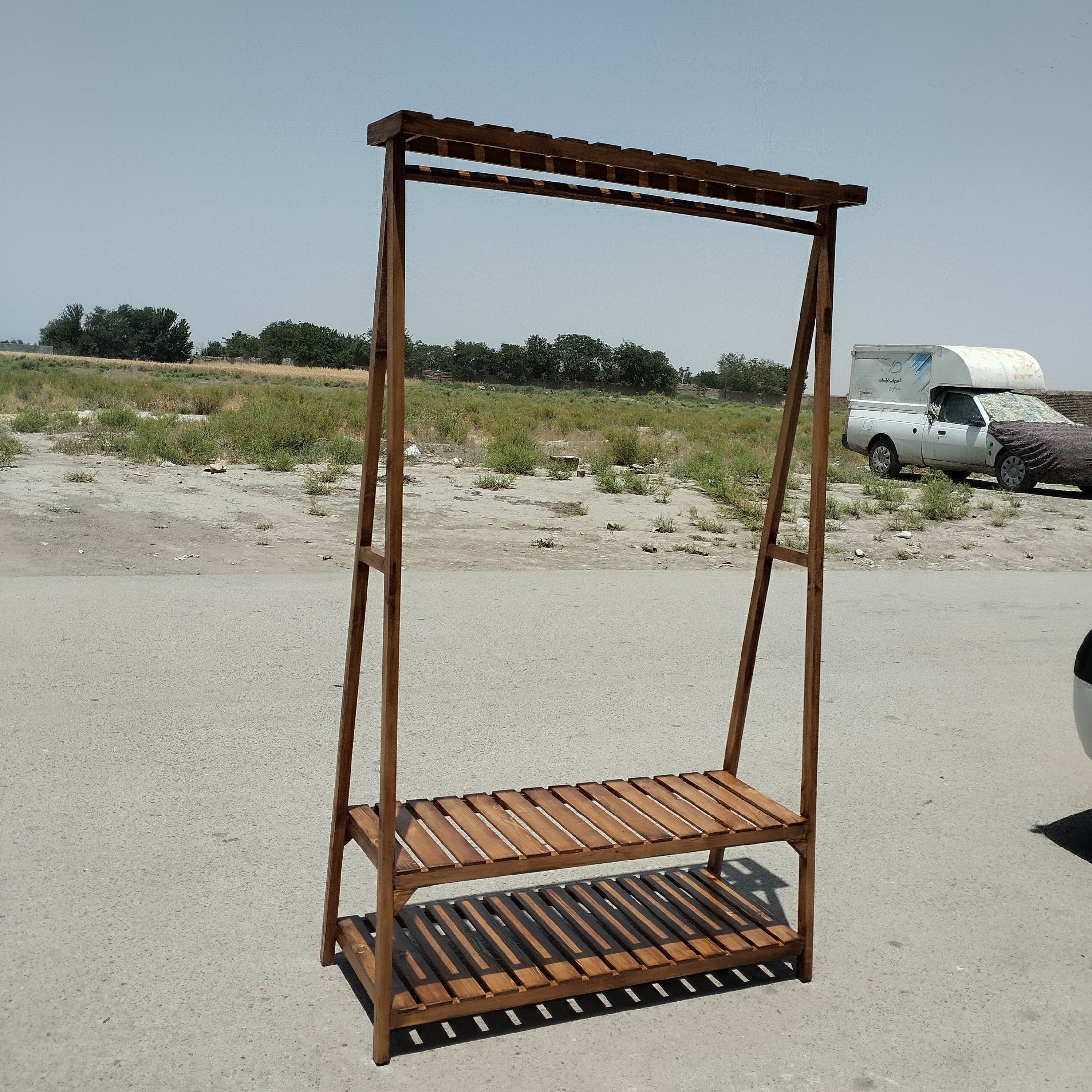 رگال لباس ابزاری کاربردی جهت نظم بخشی به لباس ها مدل مثلثی دو طبقه تاجدار رنگ گردویی روشن
