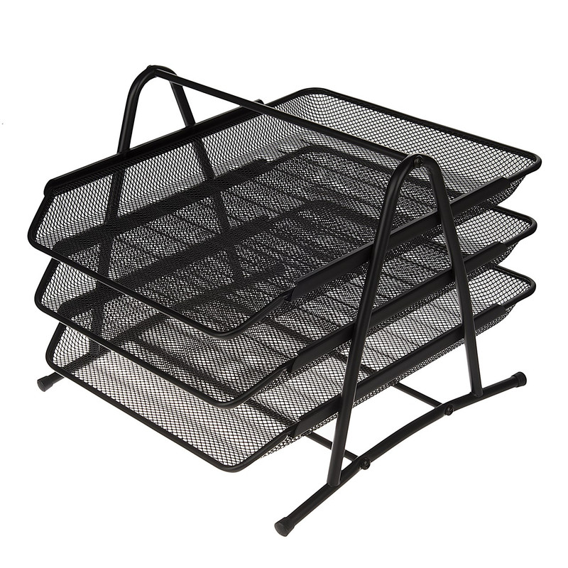 اگر میخواهید از شر برگهها و پروندهها و مجلات و فرمهای متعددی که روزانه روی میز کارتان پخش میشوند خلاص شوید، پیشنهاد میکنیم «کازیه کد 9181» را تهیه کنید. این محصول به شما در نظم دادن به برگهها و فرمها و حتی مجلات و روزنامههای روی میزتان کمک میکند. همهی اد و مدارکتان به جای پخش شدن همیشه گوشهی میزتان مرتب روی هم قرار خواهند داشت. اینطوری هم برگههایتان نظم میگیرند، هم در دستان هستند و هم میزتان مرتب خواهد بود.این کازیه از فلز ساخته شده و سه طبقه دارد. طراحی فلزی و توری شکل کف هر طبقه جلوهای مدرن به آن داده است. در نتیجه اگر تا الان میزتان را با وسایلی جدید چیدهاید به آسانی این کازیه در کنارشان قرار خواهد گرفت. این محصول برای میزهای تحریر تمام افرادی که با برگههای متعدد در طول روز سروکار دارند بهخصوص آنهایی که کارشان اداری است، مناسب خواهد بود. در مجموع کازیه کد 9181 یک لوازم رومیزی کارآمد و خوش ساخت برای نظم دادن به میزکار شما است.