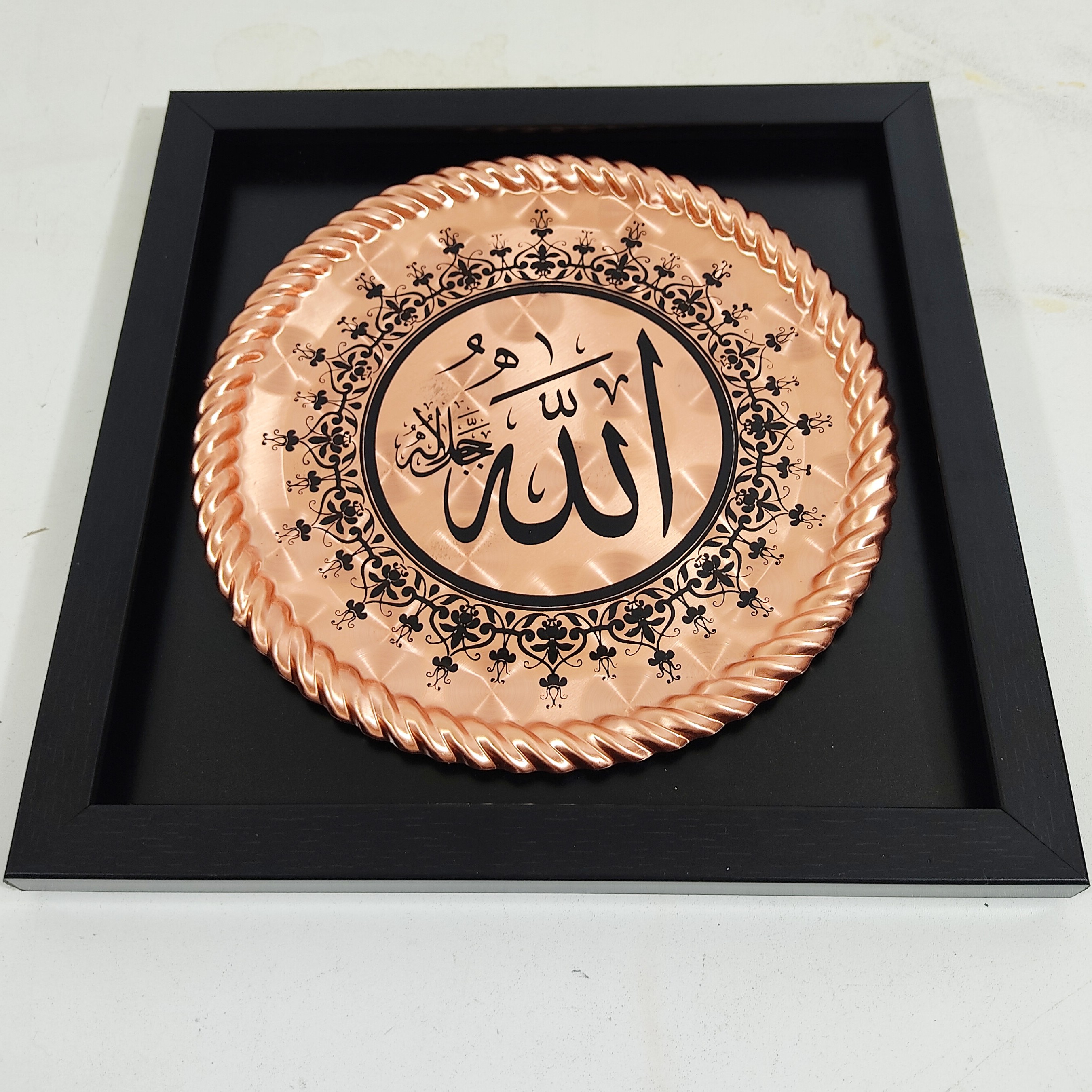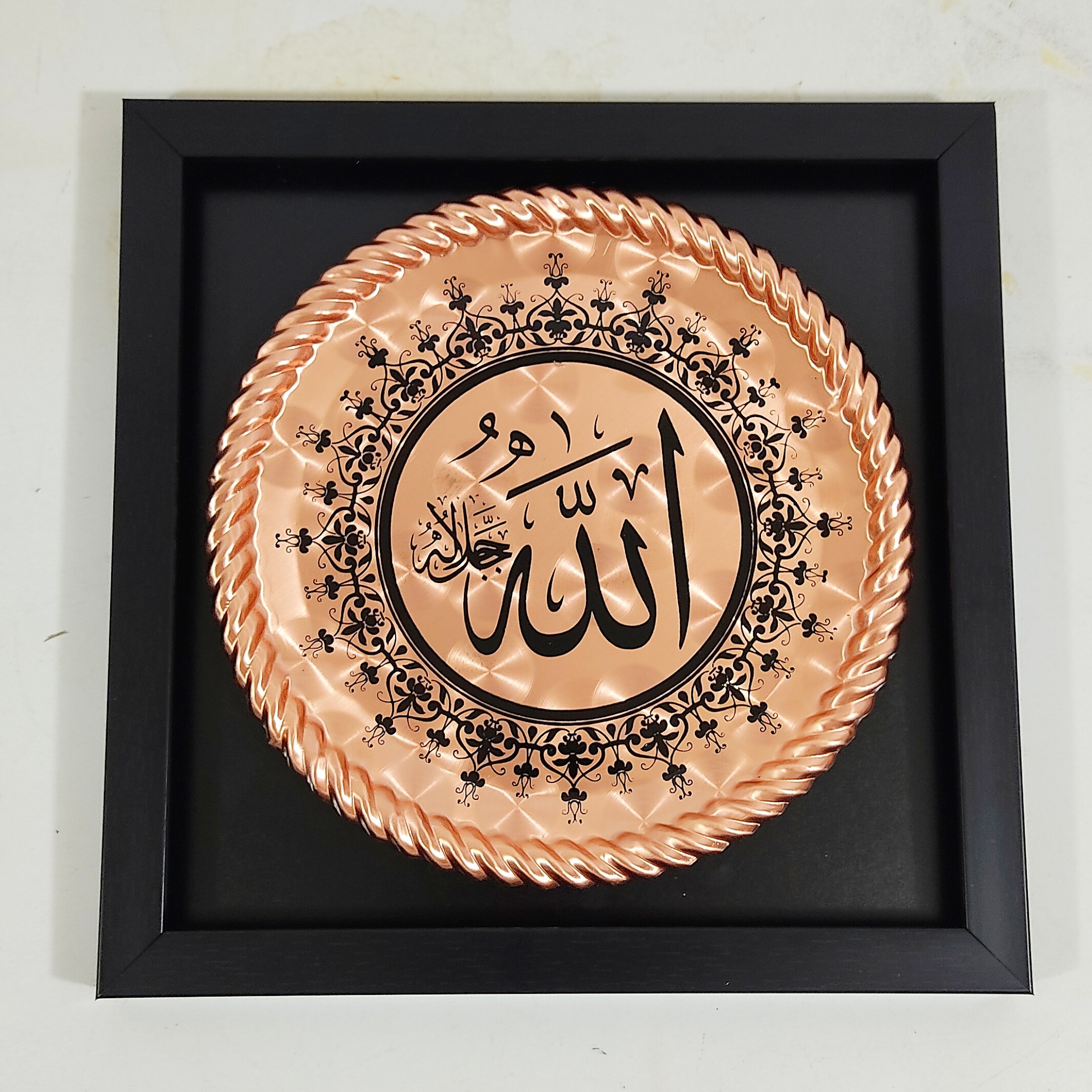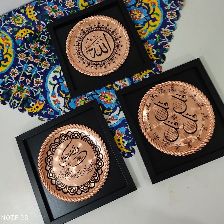 تابلو مسی مربع ۲۹ در ۲۹ سانت کلمه الله ، و ان یکاد و چهار قل نانو شده ، تابلو مسی رنگ ثابت ،ارسال رایگان ، تابلو مسی با قاب چوبی ، بدون شیشه ، محصول زنجان ، تابلو مسی و ان یکاد و چهار قل هم به همین قیمت موجود است صنایع مس رز زنجان افتخار تولید و پخش ظروف مسی اصیل زنجان را دارد که بصورت سنتی تولید می شوند کیفیت عالی، بسته بندی خوب، ارسال رایگان و سریع و نانو بودن محصولات از ویژگی های غرفه ماست، نانو پوشش خیلی نازک از مواد خاص و مقاوم می باشد که روی ظروف مسی زنجان قرار می گیرد و در کوره های مخصوص به وسیله حرارت تثبیت می شود این پوشش نانو ظرف را در مقابل هوا و رطوبت محافظت کرده و از اکسید و کدر شدن جلو گیری می نماید . خواهشمندیم هنگام شستشو جهت ماندگاری ظروف مسی بخصوص ظروف مسی نانو شده و قلع شده از اسکاچ بدون سیم و نرم استفاده شود و بلافاصله با دستمال نرم خشگ گردد و از تماس انها با مواد شیمیایی مانند وایتکس و غیره خوداری گردد، ظروفی که در انها غذا پخته و سرو می شود باید داخل انها به وسیله فلز قلع پوشش داده شود، پوشش قلع باعث جلو گیری از حل شدن زیاد یون های مس در غذا می شود. عنصر مس نقش مهمی در مبارزه بدن با التهاب مزمن ، تشکیل سلول های قرمز خون، و افزایش ایمنی بدن دارد ، همچنین برای تشکیل میلین که برای اعصاب مانند عایق است، مورد نیاز می باشد، عنصر مس باعث نابودی میکروب های مختلف می شود بطوری که دستگیره درب ها و شیر های اب اطاق عمل را از جنس مس می سازند،