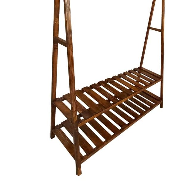 رگال لباس چوبی مدل دو طبقه ساده رنگ گردویی تیره مبلمونسرا مدل 231457