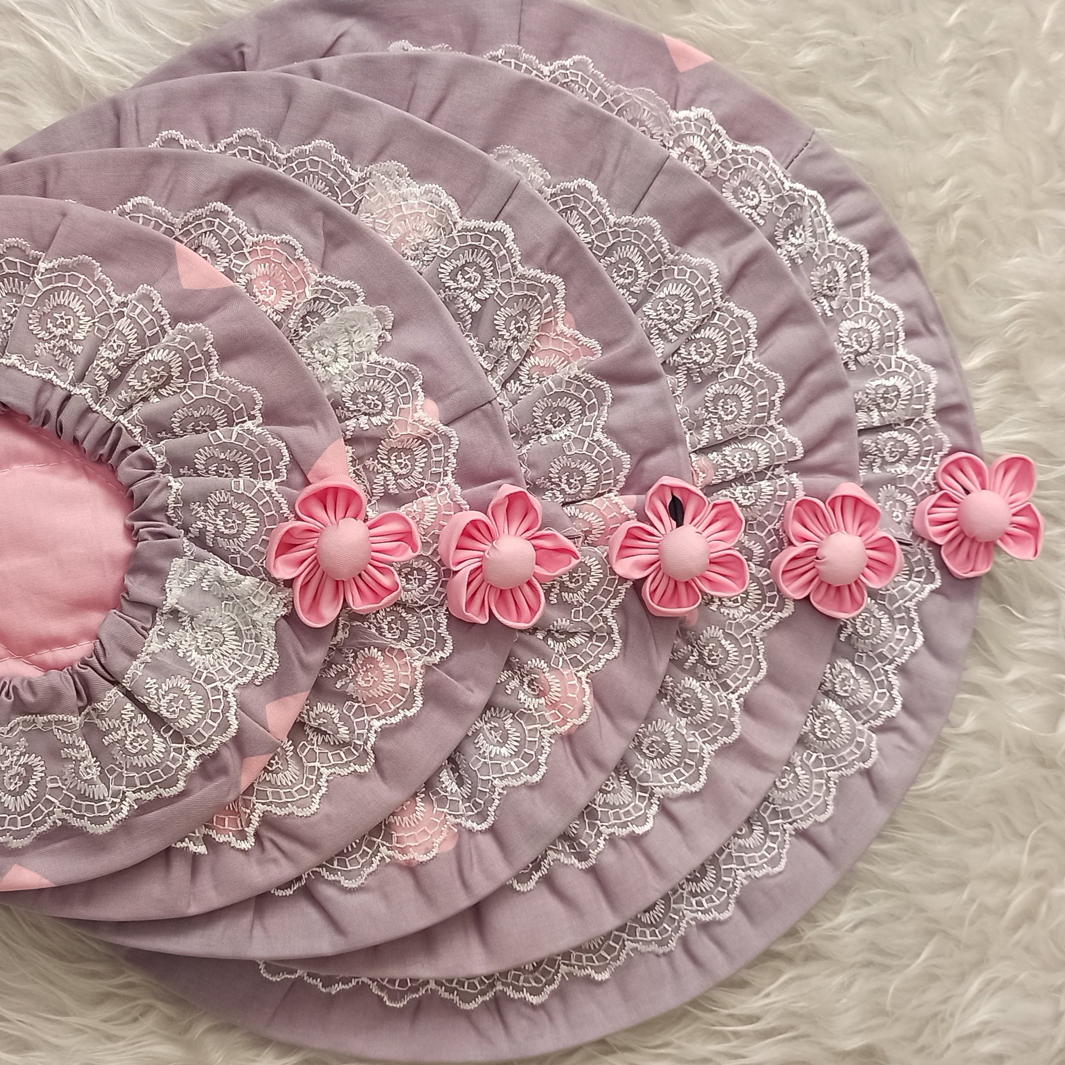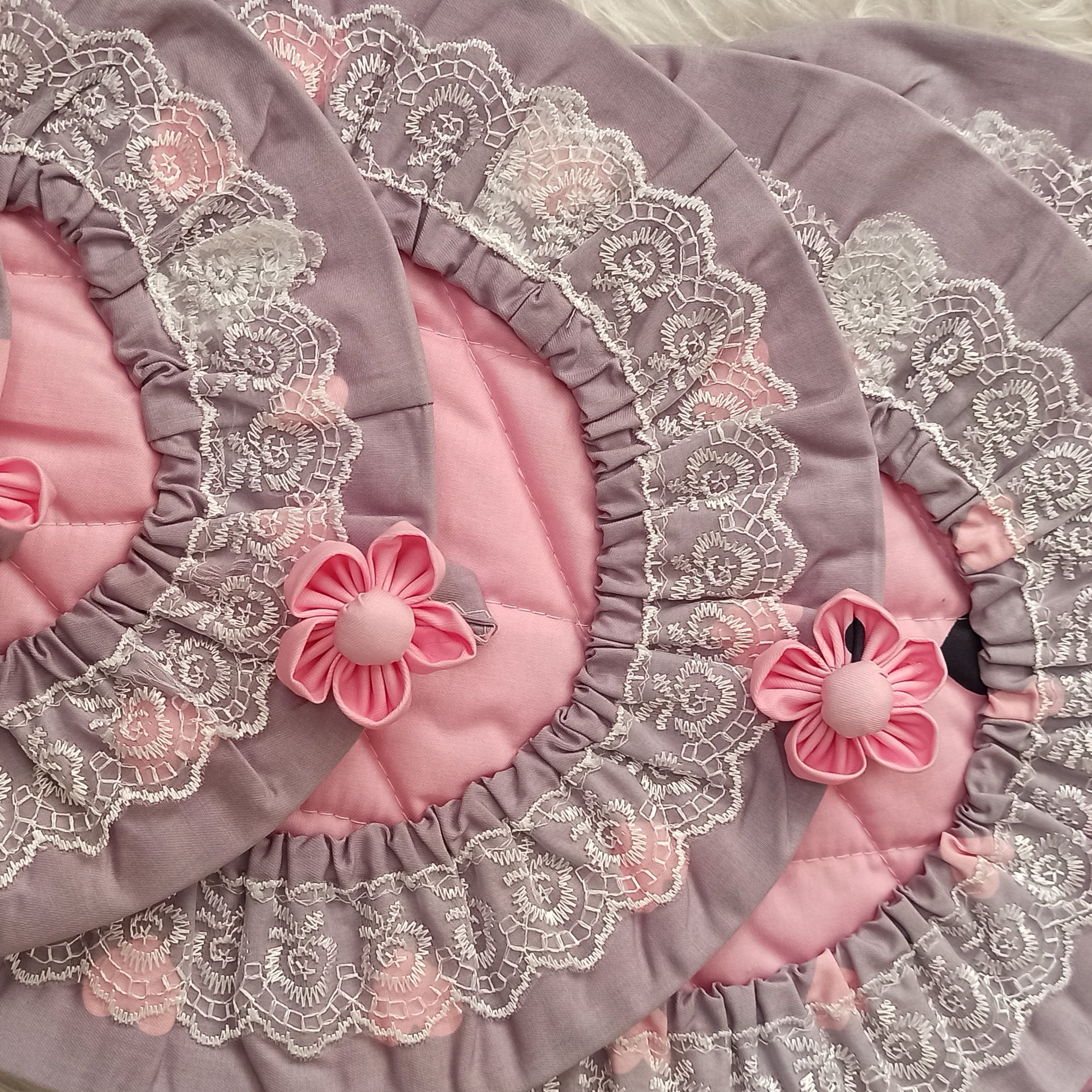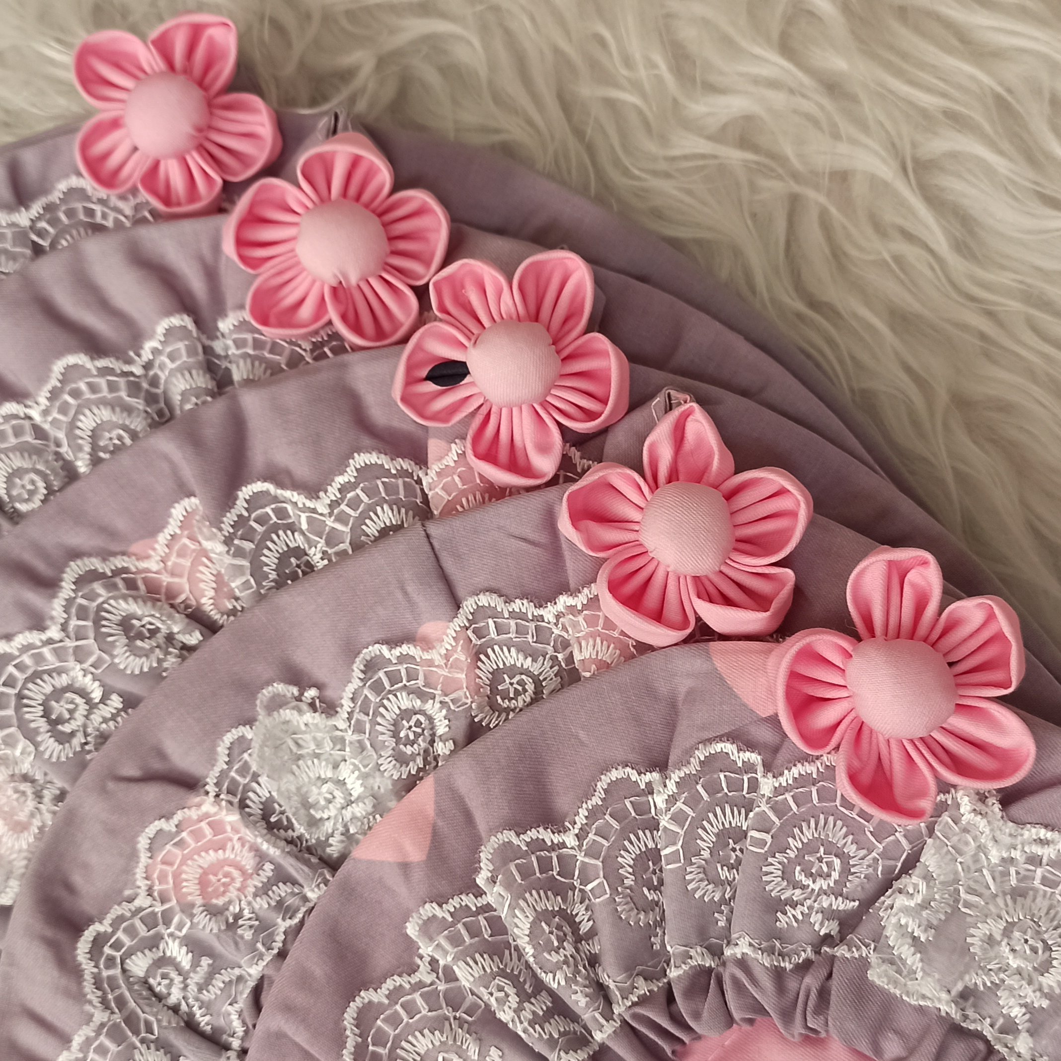 دمکنی در پنج سایز مختلف . با جنس کتان نخ عالی . توردوزی شده . شکوفه دست ساز دارد . اویز جهت اویختن به دیوار دارد . دوخت و کیفیت عالی