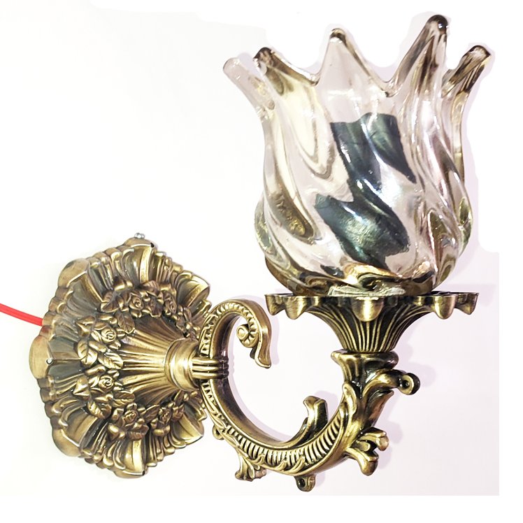 دیوار کوب مدل گلوریا رنگ آنتیک لاله پیچ رنگ شامپاین لیزری تک شعله اتصال به برق جهت روشنایی کلیه محصولات دارای ضمانت نامه کتبی رنگ و گارانتی اصالت و سلامت فیزیکی کالا می باشد .