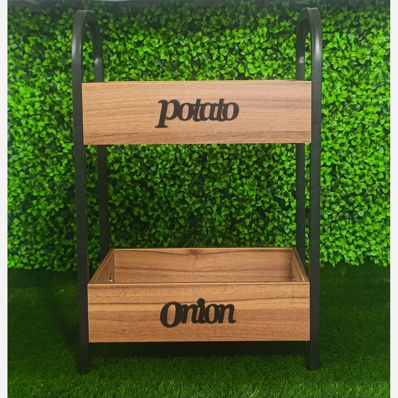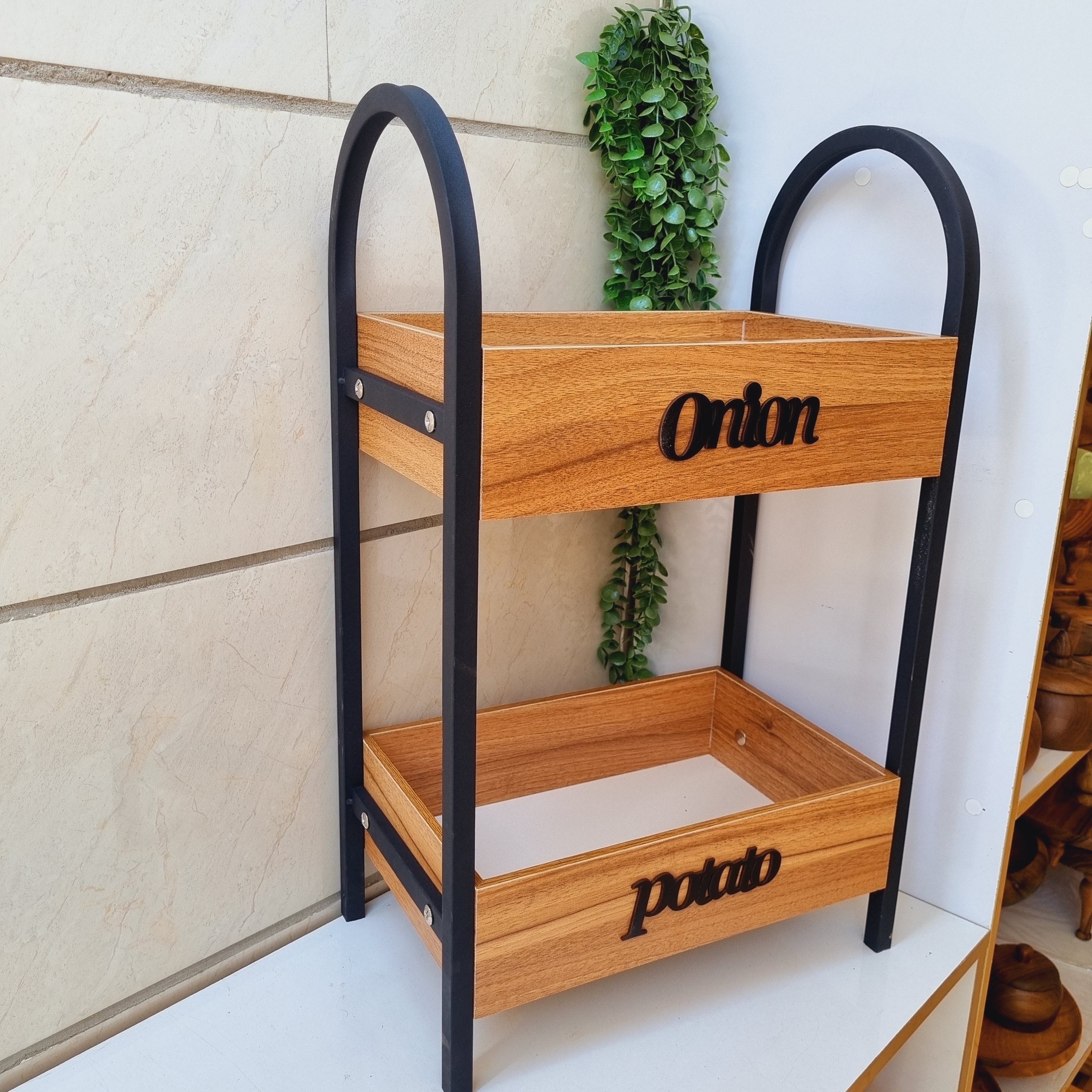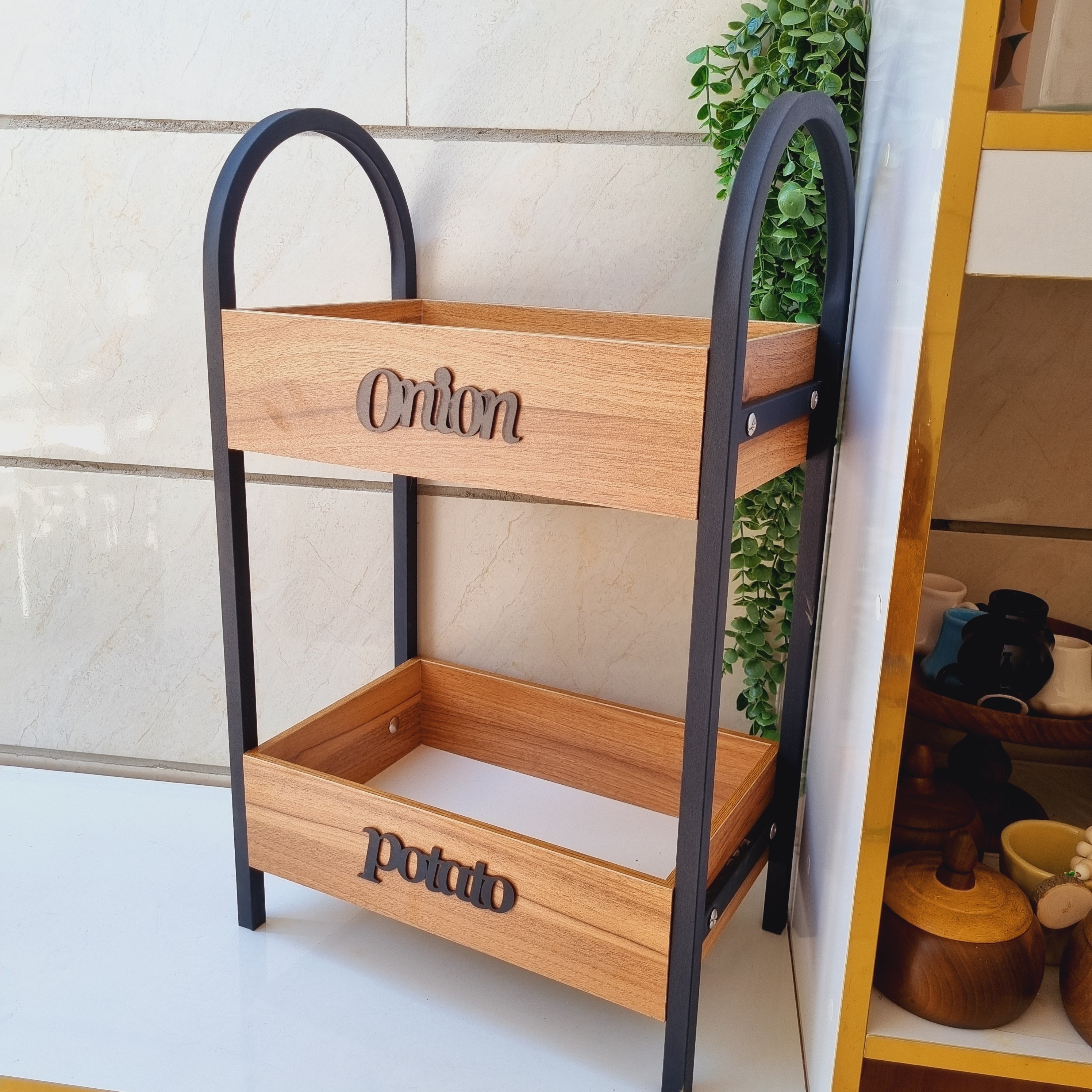 🛒✨ «مرتب، شیک و همیشه دمِ دست! استند چوبی دوطبقه برای نگهداری پیاز و سیبزمینی، هم زیبایی آشپزخانهتون رو دوچندان میکنه هم نظم رو بهش هدیه میده.» 🥔🧅