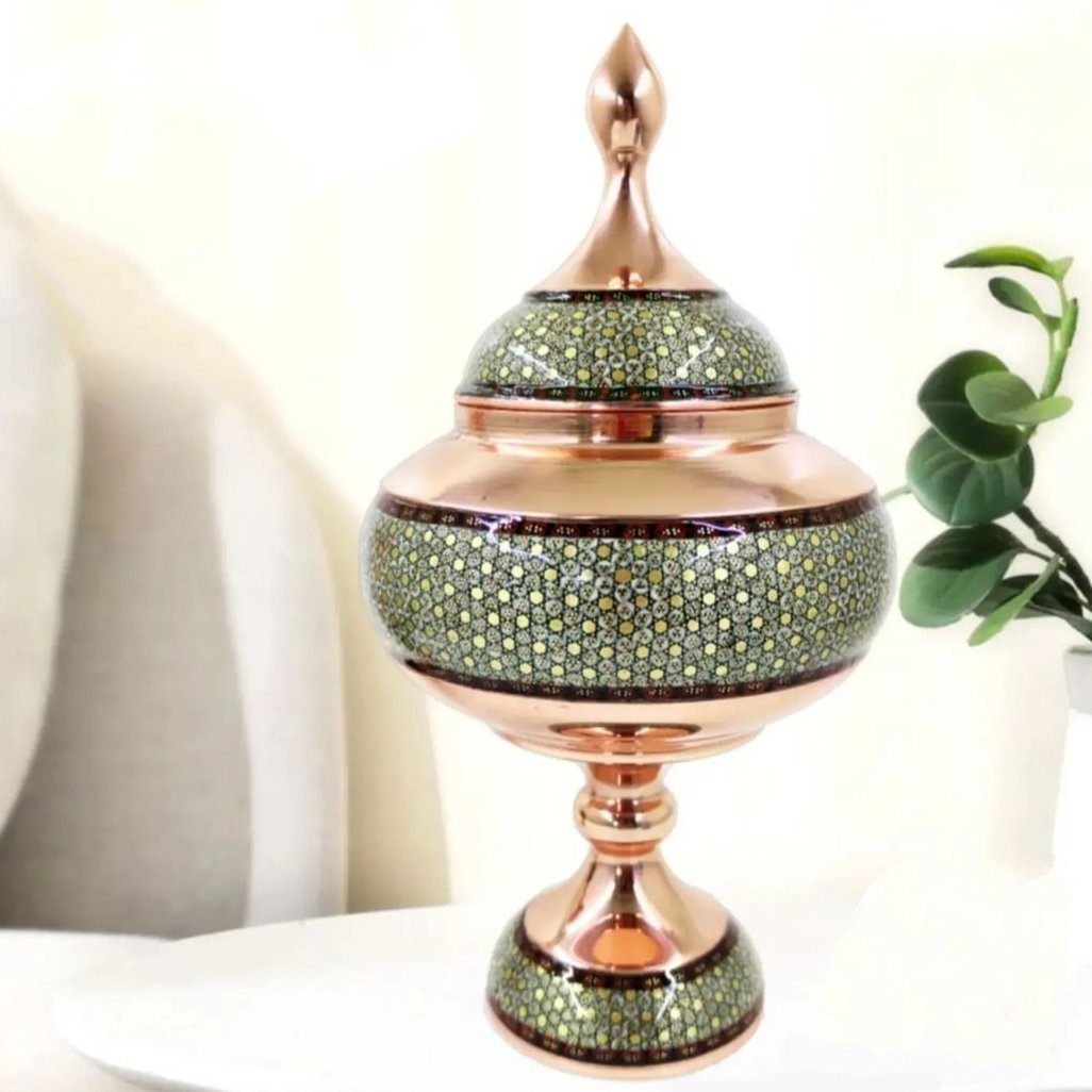 شکلات خوری خاتم 26 سانتی شکلات خوری مس و خاتم قندان پایه دار خاتم یا گز خوری صنایع دستی سایروس مبلمونسرا مدل 276256