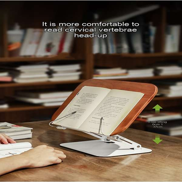 نگهدارنده چند منظوره برای استفاده از کتاب -لب تاب -تبلت پایداری قوی محصول در برابر سنگینی ستون و پایه فلزی صفحه رویی چوب سازگار با بسیاری از اندازه ها آسان برای مطالعه تنظیم زاویه بینهایت دارای گیره برای نگهداری از صفحه نخوردن کتاب