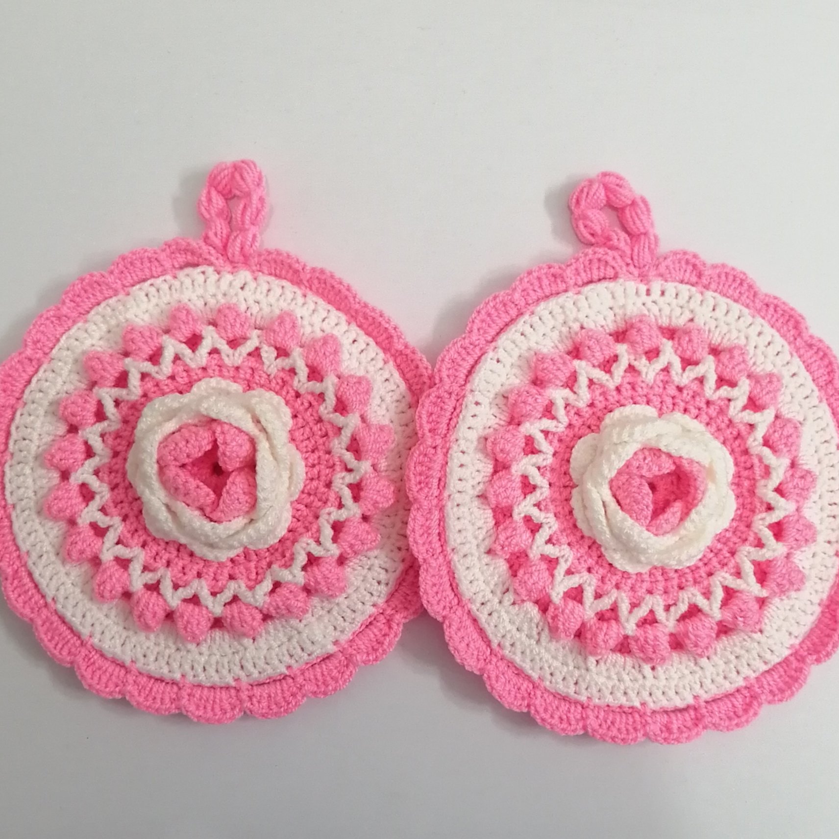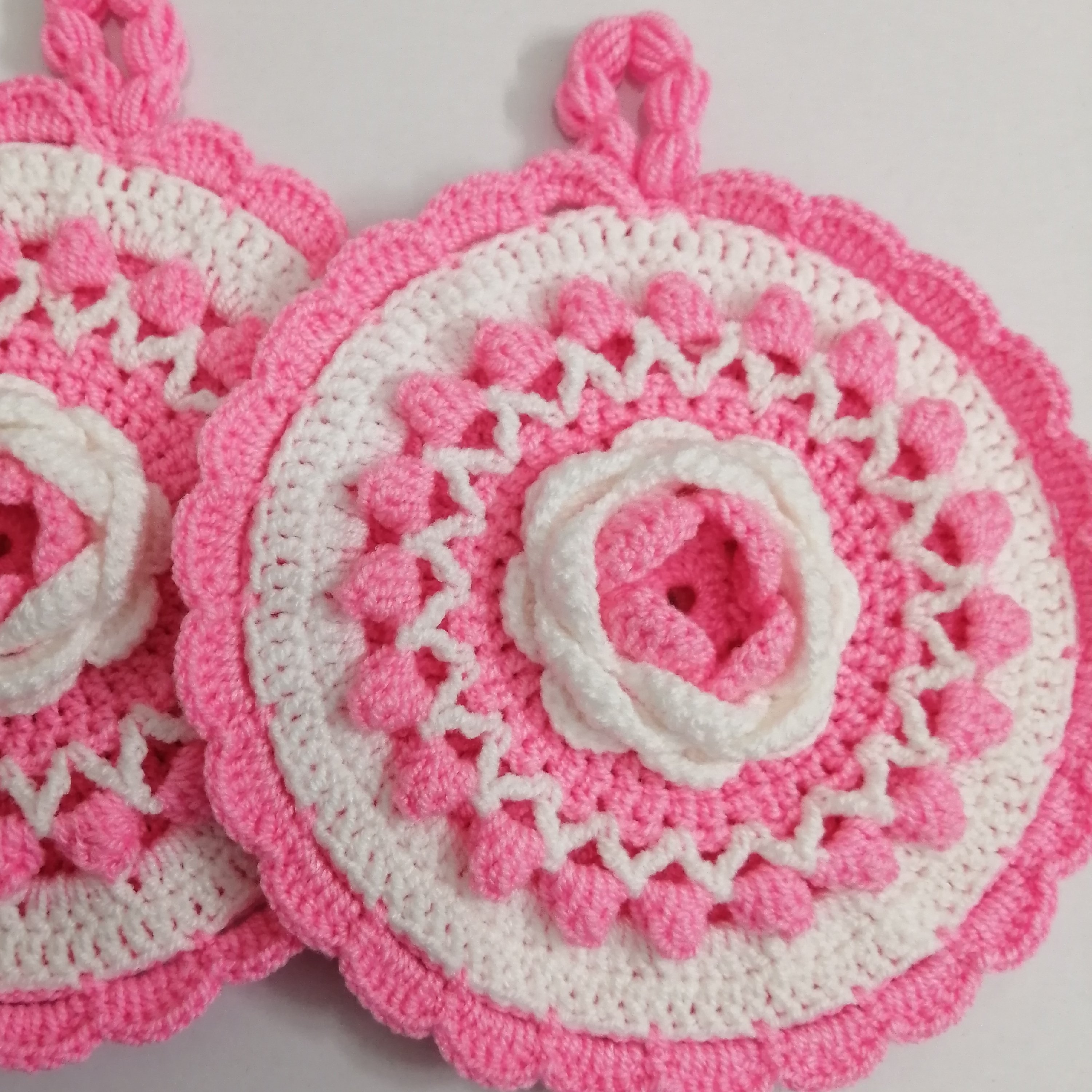دستگیره آشپزخانه بافتنی گل رز صورتی مبلمونسرا مدل 300599