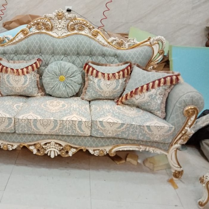 مبل سلطنتی 9 نفره سفید طلایی ولیعصر 🥰 با رنگ سفید و سرگل های طلایی که جذابیت عالی داره ترکیب مبل سلطنتی 9 نفره: یک عدد کاناپه سه نفره ،4 عدد مبل، دوعددصندلی میزبان،یک عدد میز وسط ،دوعدد عسلی کنار مبلی چوب کار درجه یک و تضمینی ترکیب چوب چنار و توسکا پارچه درجه یک یزد ،کف کار فوم سرد، اسفنج پشتی 30 کیلو رنگبندی چوبو پارچه کاملا دلخواه شماست ارسال به سراسر کشور داریم 🚛 هزینه ارسال به عهده مشتری و به صورت میباشد...