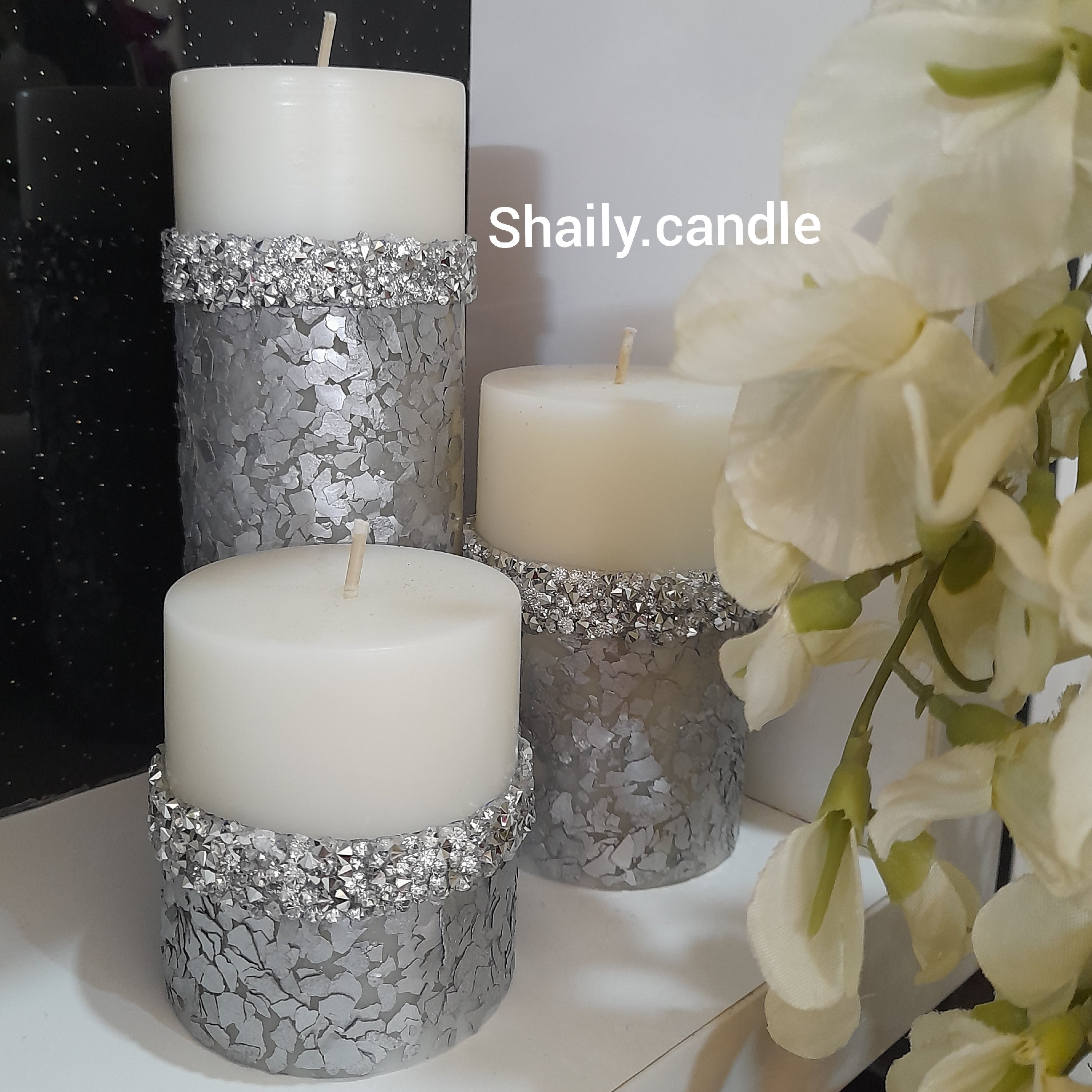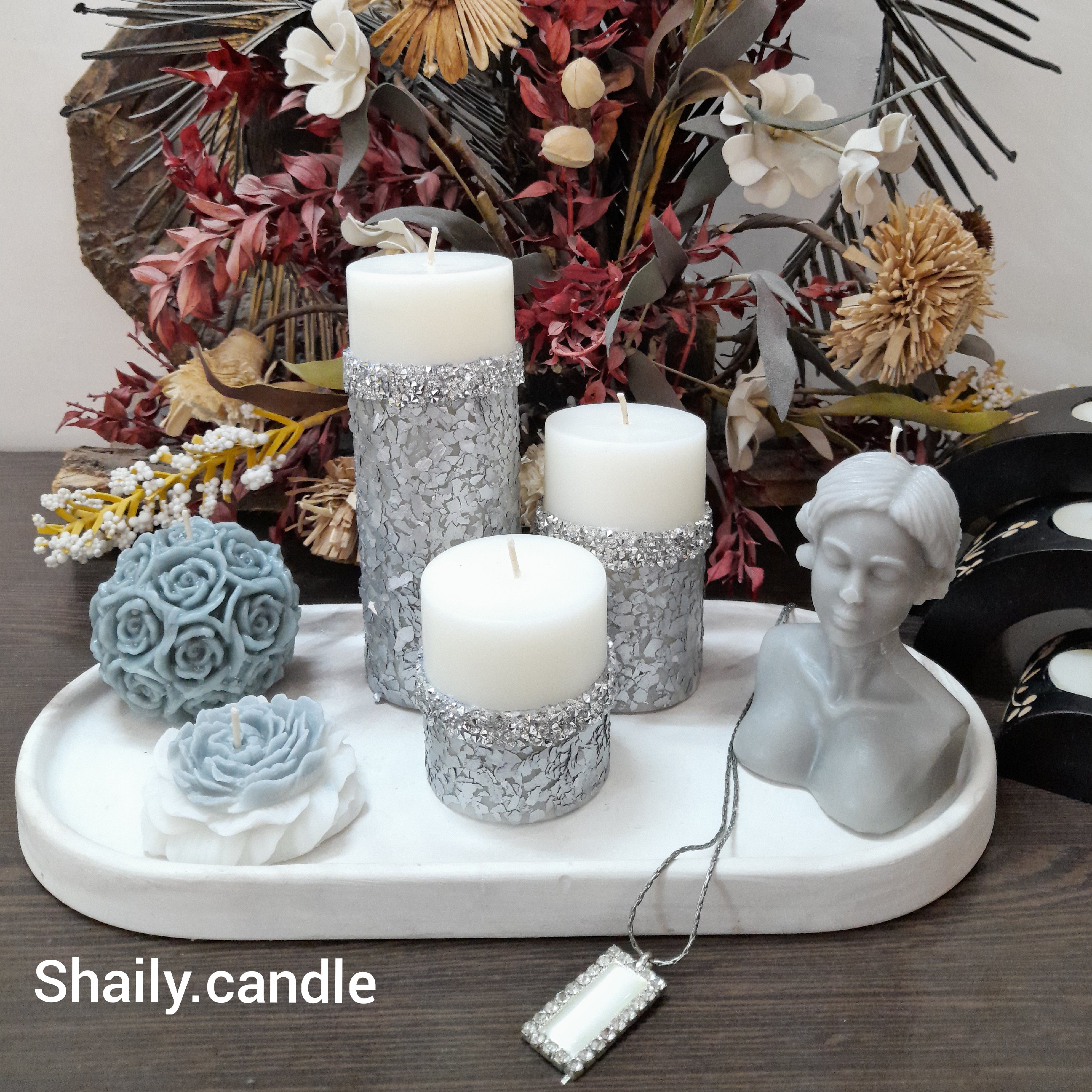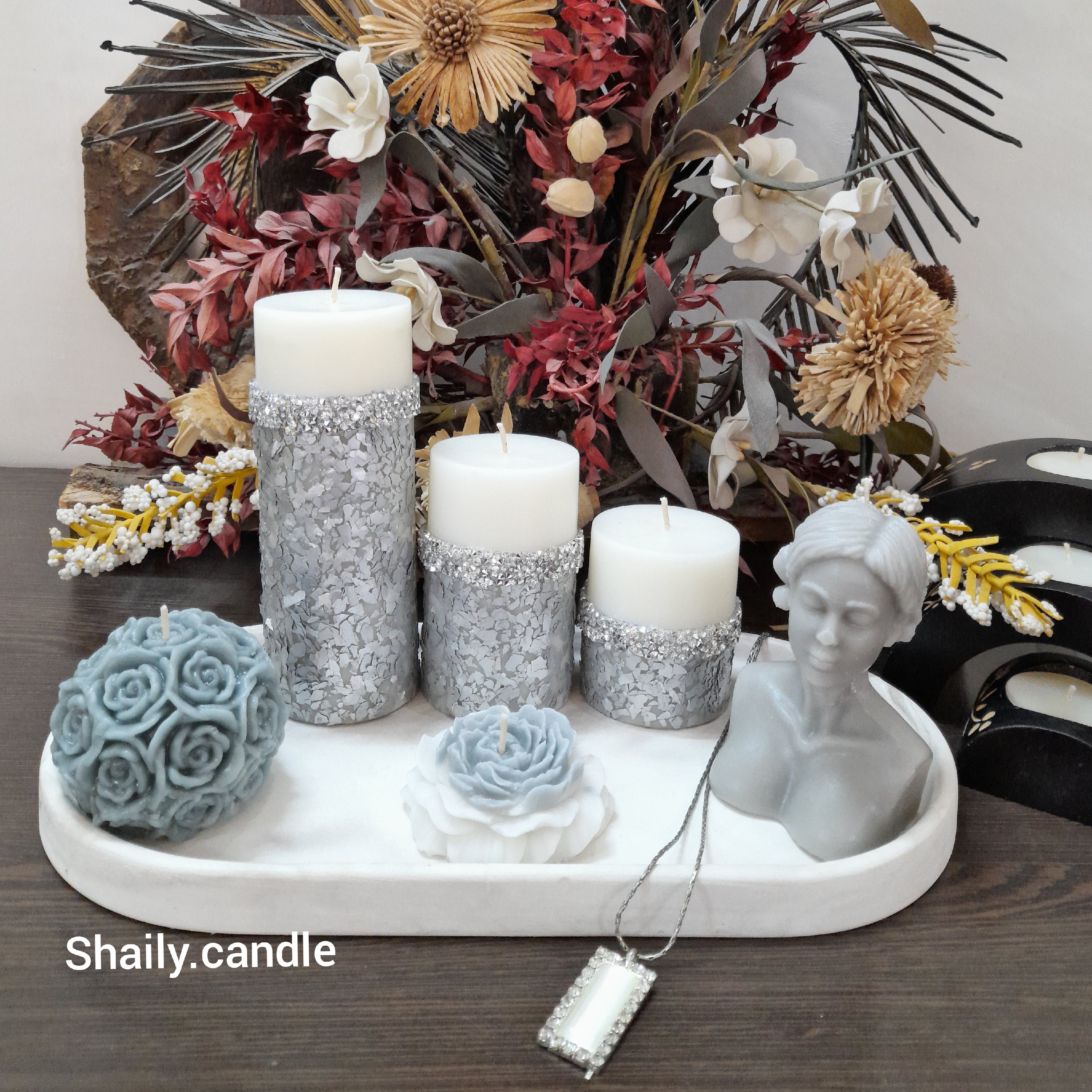 ست شمع استوانه گرانیتی رنگ نقره ای مبلمونسرا مدل 283116