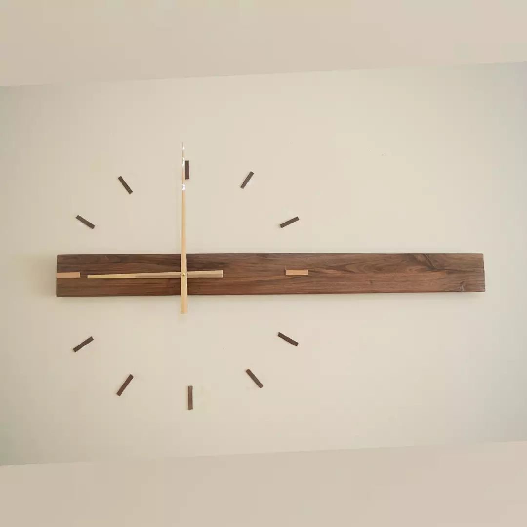 ساعت دیواری ساده اما متفاوت و خاص جنس: بدنه چوب گردو تیره بادوام نشان های ساعت در دومدل 1 2 پوشش روغن بورما ایتالیا مقاوم دربرابر اب و رطوبت ابعاد: 80 *45 سانت موتور ساعت تقویتی عقربه فلزی درسه رنگ طلایی مشکی نقره ای ورق بزنید عقربه چوبی مشکی زرد قهوه ای وکرم رنگ نصب بسیار اسان نشان های ساعت