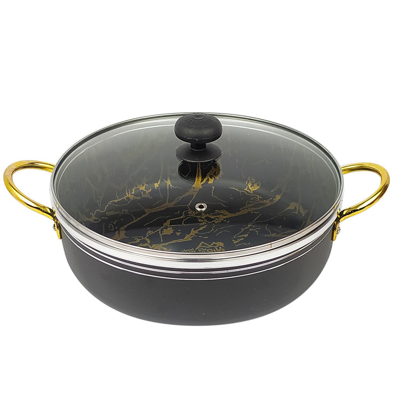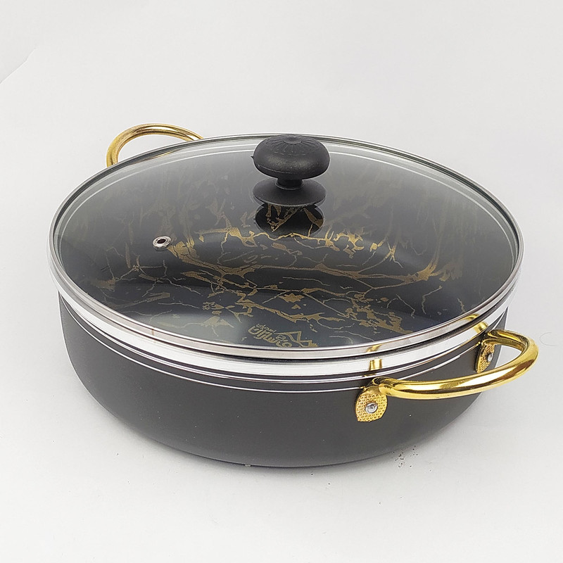 تابه های دربدار با ضخامت معمول و رش سه لایه گرانیت طبیعی طرح سنگ ماربل جهت پخت انواع غذاها مناسب است.درب نشکن با سوپاپ تخلیه بخار امکان پخت انواع غذاها را فراهم میکند.دسته های این تابه ها کاملا فلزی با رنگ زیبای طلایی که ثابت بوده و به مرور زمان تغییر نمیکند و امکان قرار دادن ظرف در فر را فراهم کرده است.پوشش بیرونی رنگ کوره ای بسیار مقاوم و نسوز بوده و رش گرانیت طبیعی داخل ظروف بدون مواد مضر PFO و کاملا گیاهی میباشد.ارتفاع 8 سانتیمتری تابه ها جهت پخت غذاهای حجیم و مرغ و خورشت مناسب است.
