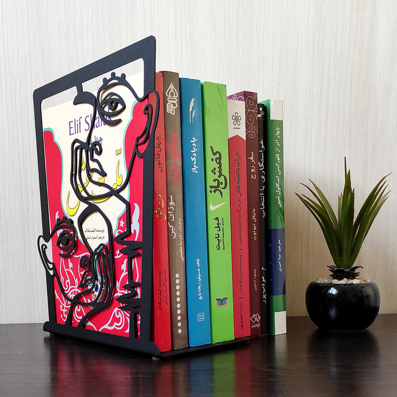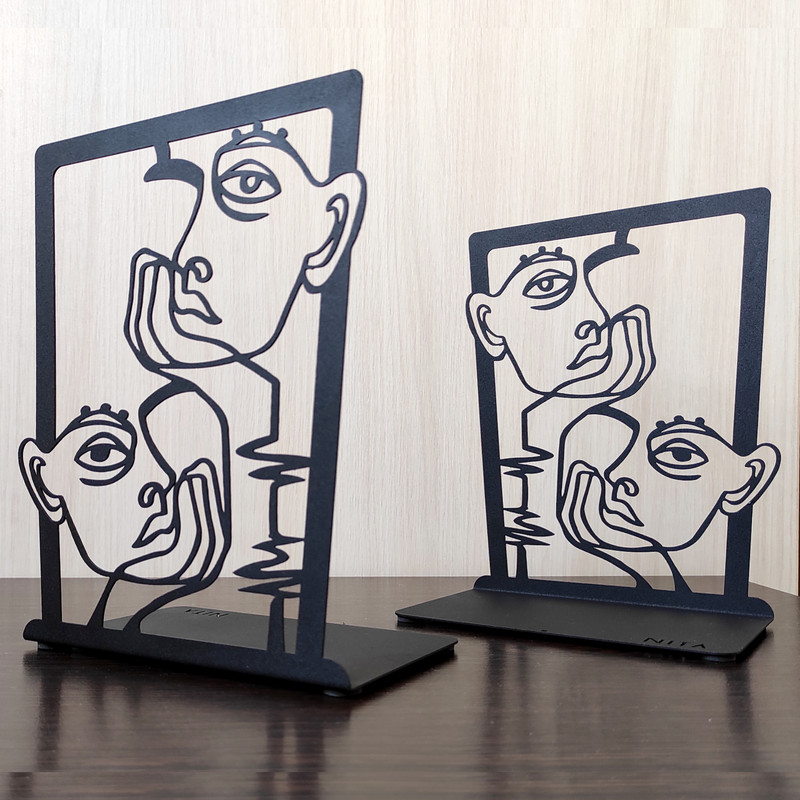 نگهدارنده کتاب نیتا طرح ژلی بسته دو عددی، یک محصول هنری، خلاقانه و کاملا کاربردی بوده و دارای طرح چهره با ظرافت و دقت بالا و در عین حال مقاوم می باشد. این محصول مناسب قرار گرفتن روی میز، روی شلف دیواری و یا داخل کتابخانه بوده و نمای زیبایی به محیط اطراف خود القا می کند. با استفاده از این محصول میتوانید کتاب های خود را استاده نگه داشته و همچنین یک دکوری منحصر بفرد داشته باشید. این محصول از فلز مقاوم ساخته شده و دارای رنگ استاتیک کوره ای با قابلیت شست و شو می باشد و در قسمت زیر محصول چهار عدد پایه ضد خش و ضد لغزش وجود دارد.
