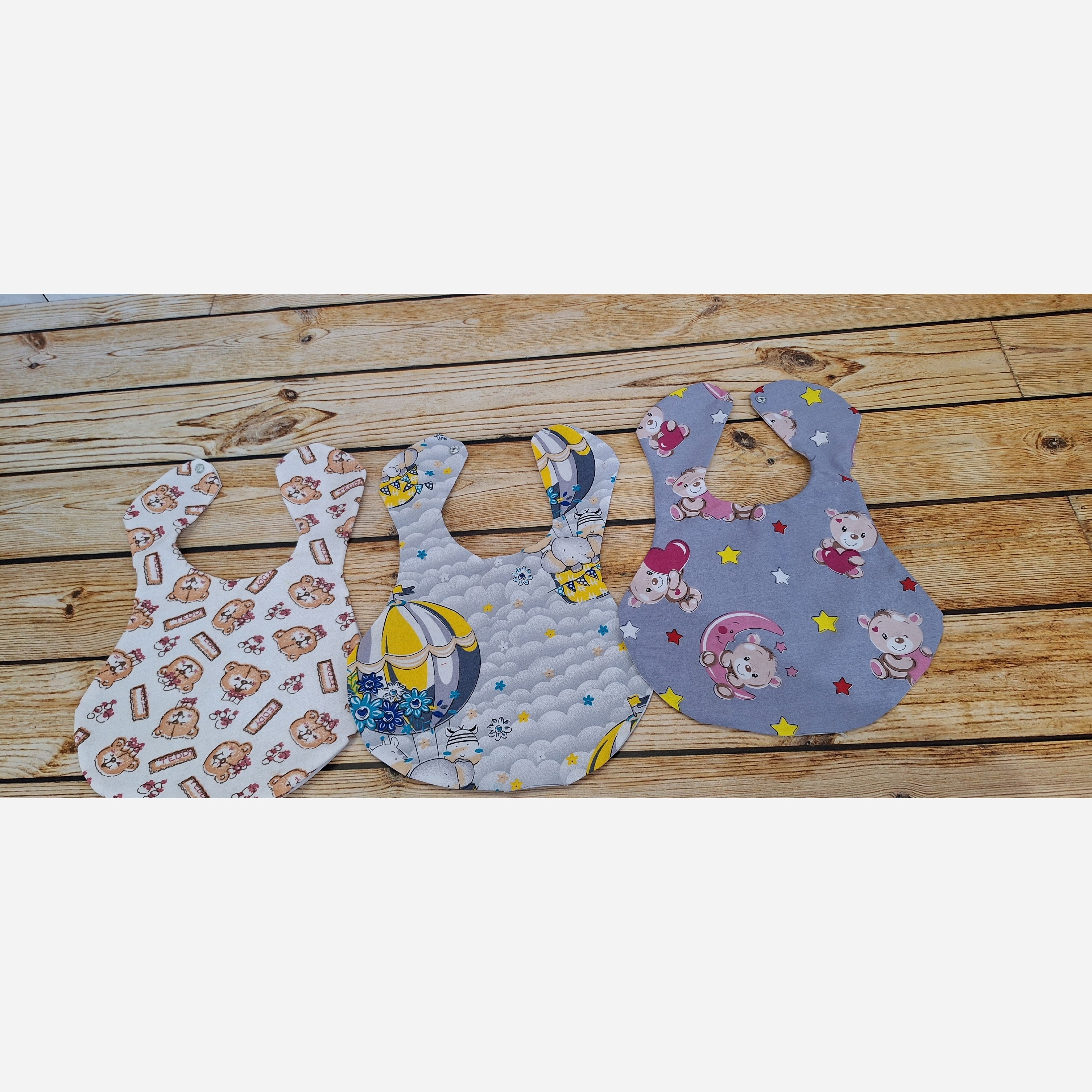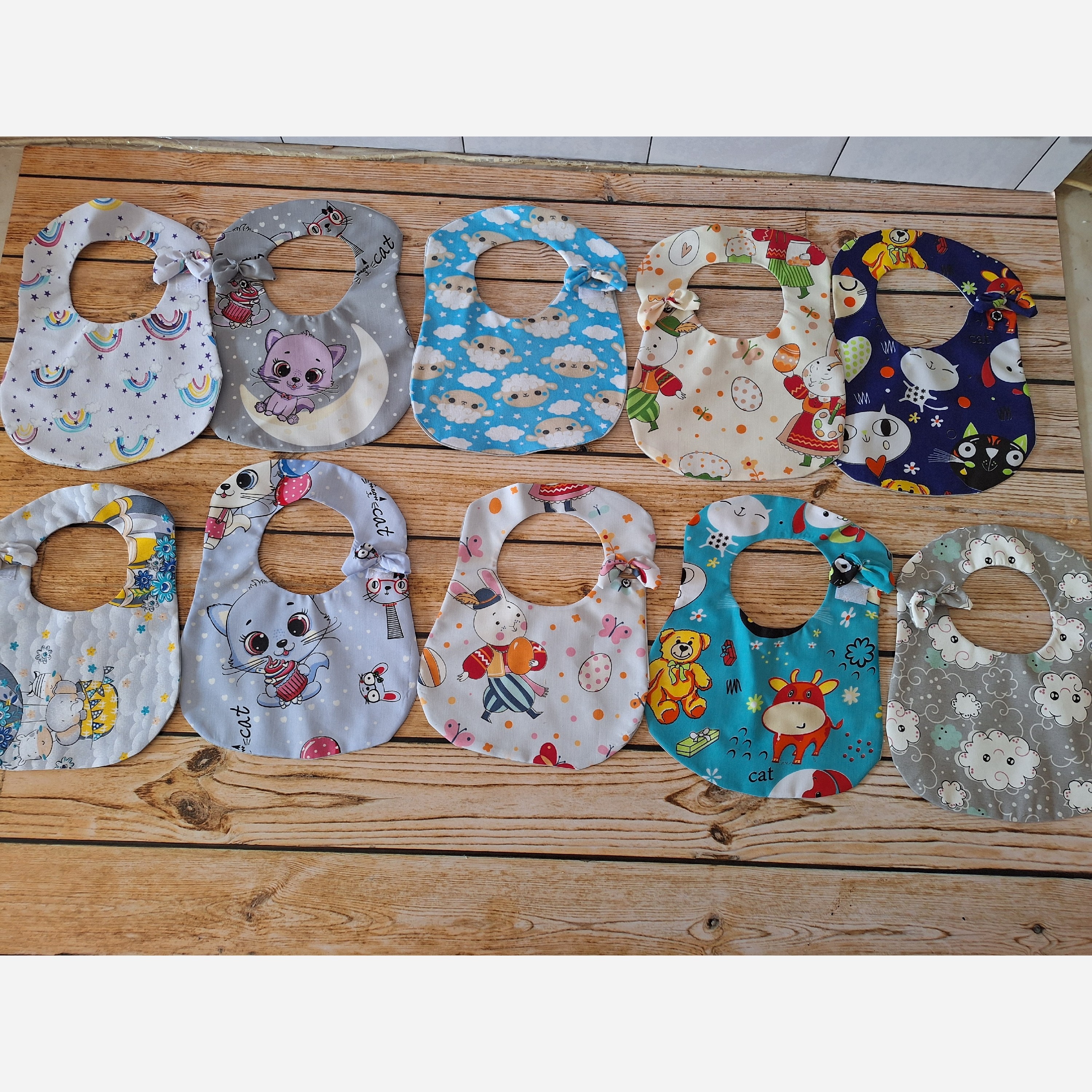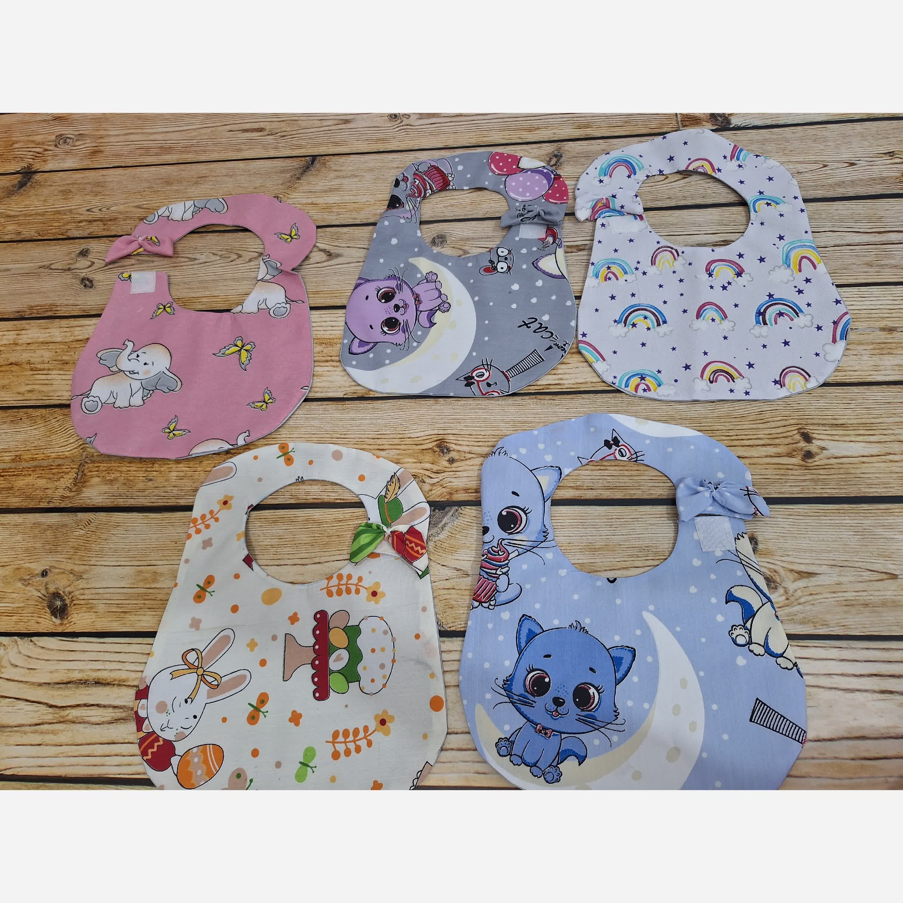 پیشبند نوزادی در طرح و رنگ متنوع دارای چفت یا چسب به سلیقه شما پشت پیشبند استر ضد اب هست این آستر پارچه برزنت یا شمعی هست درموردش میتونید سرچ کنید بعضی از دوستان نمیشناسن ولی شما بخواین سه لایه هم دوخته میشه با مشما