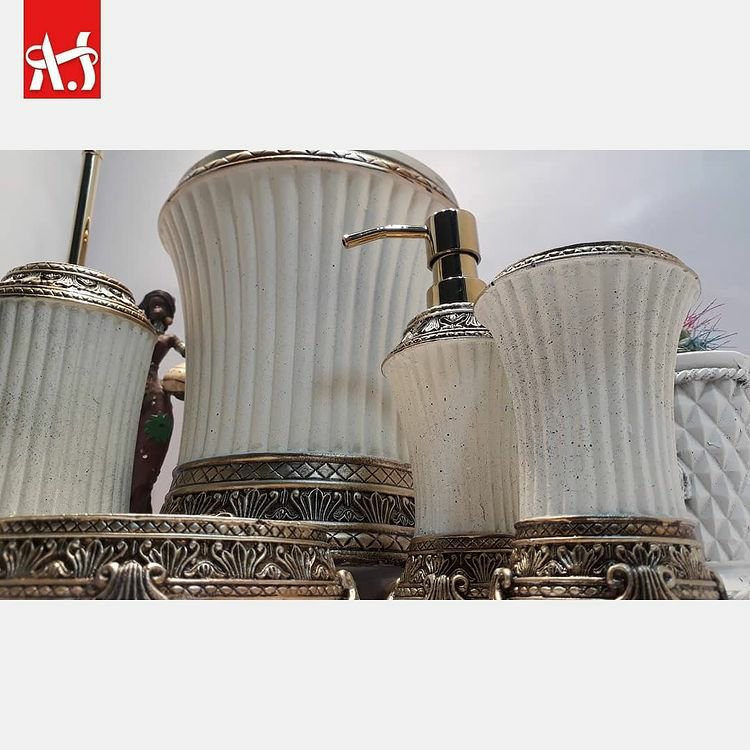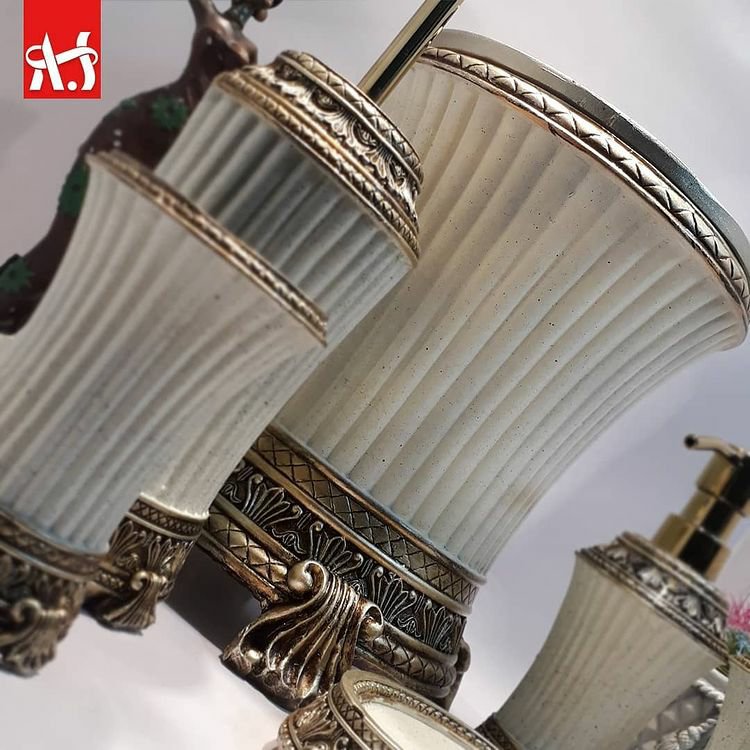 ست سرویس بهداشتی رومی آذین ست- رنگ کرم طرح سنگ با طلایی پتینه کاری شده سبک کلاسیک - اکسسوری حمام و دستشویی مبلمونسرا مدل 266562